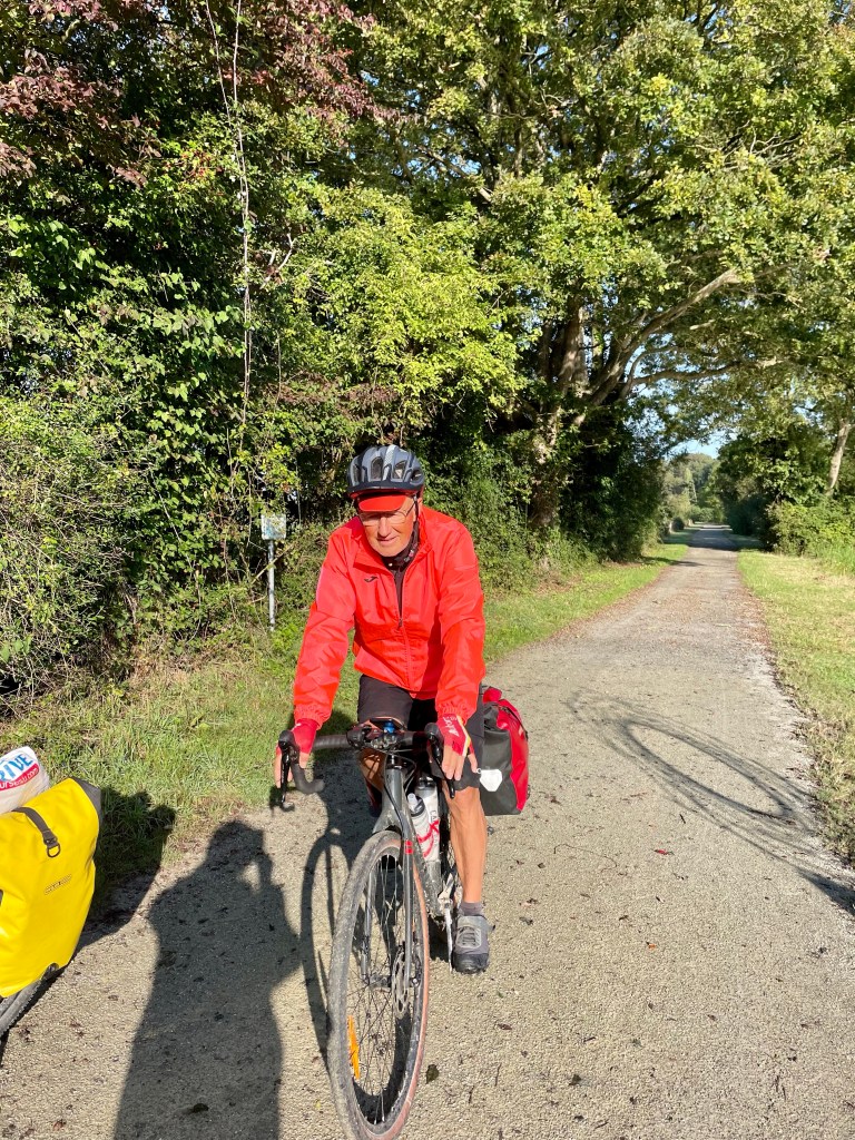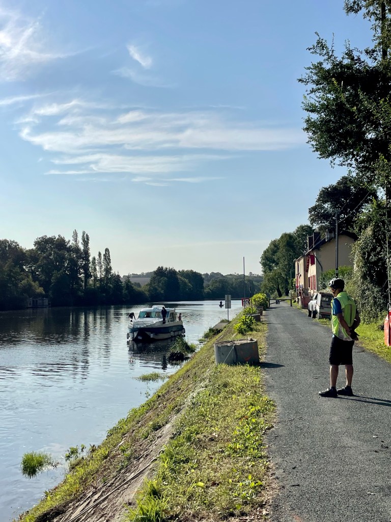 L’après-midi a été plus animée, une sortie du chemin de halage sur une route avec du dénivelé et une deuxième sortie qui a dû être une erreur de notre part. Nous nous sommes retrouvés sur un chemin caillouteux avec une pente raide plus pour les VTT que pour nos vélos. Nous avons fait demi tour et retrouvé le chemin de halage.