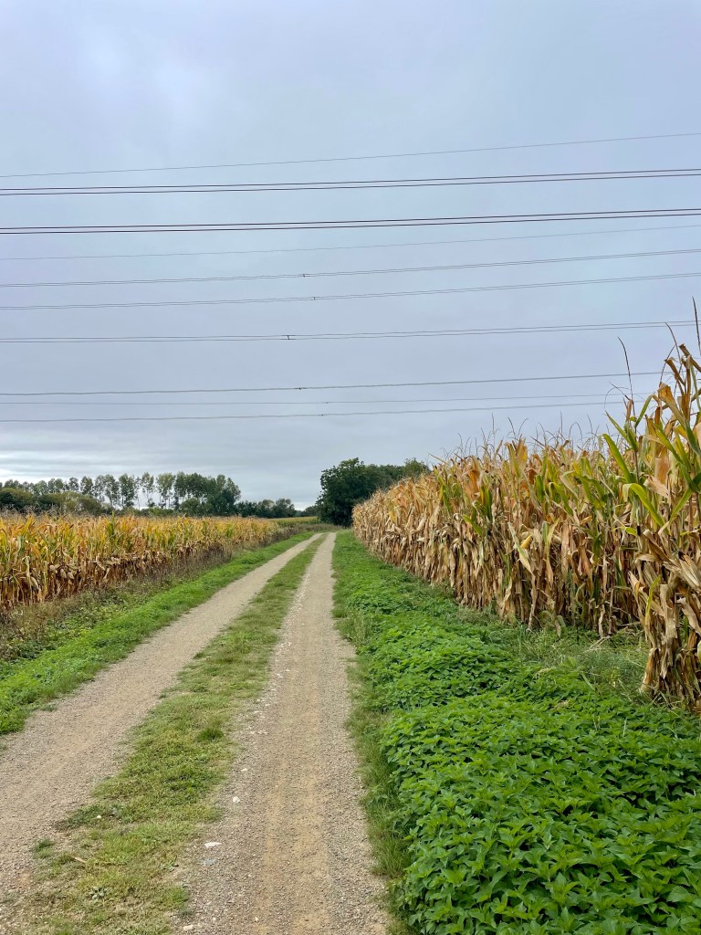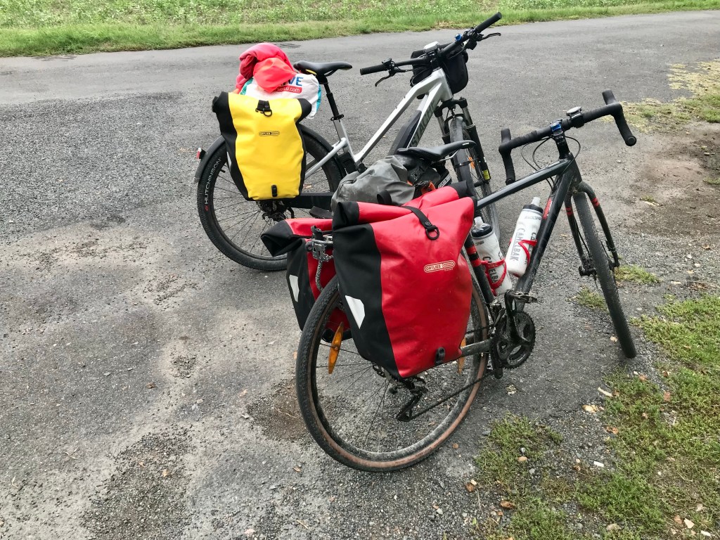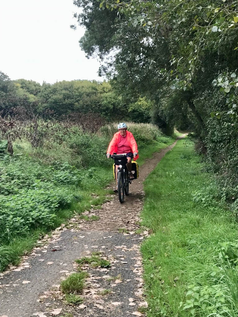 Le beau soleil d’hier a disparu. Nous allons pédaler sur des petites routes sans circulation.