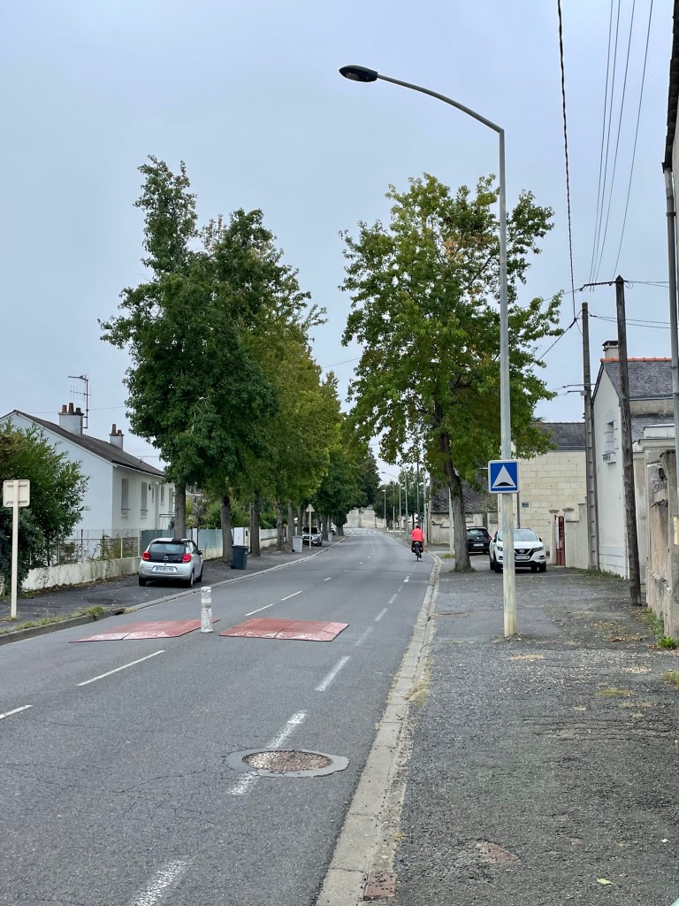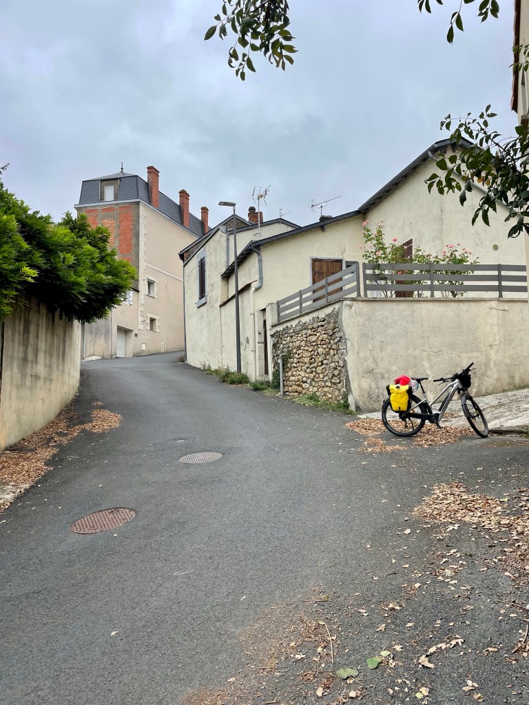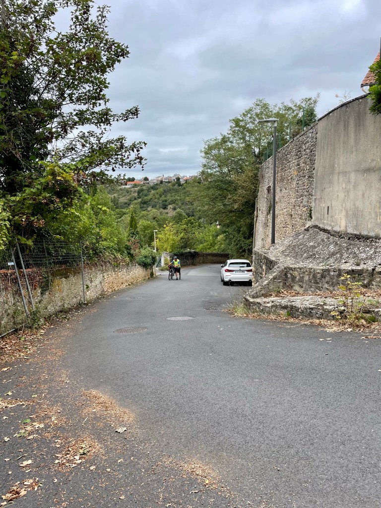 Là, je suis en difficulté, j’ai pu photographier la source car je suis en train de pousser mon vélo !!! Nous étions avertis que l’arrivée à Thouars était très dure… 300 m à plus de 12%, mais je ne pensais pas que c’était aussi difficile. Je n’ai pas passé les bonnes vitesses et hop, j’ai mis pied à terre et je pousse.