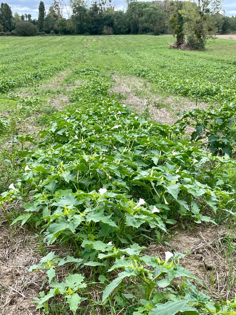 Champ avec des daturas. Ce n’est pas le premier que nous voyons. Étrange ?