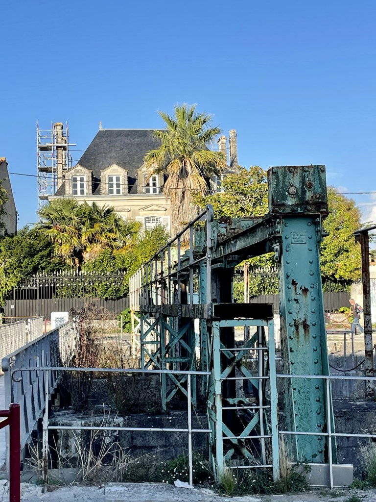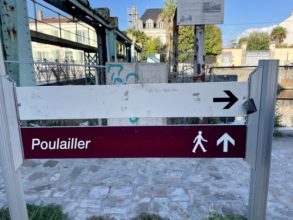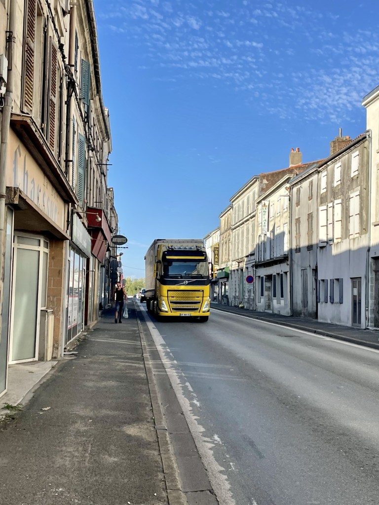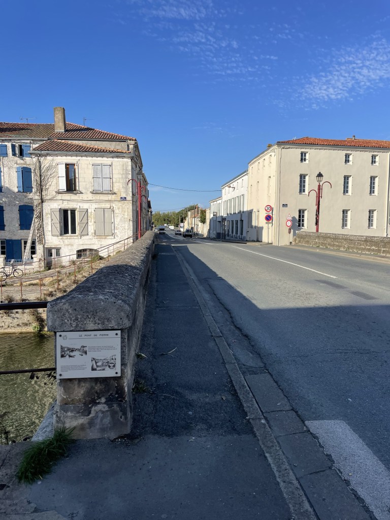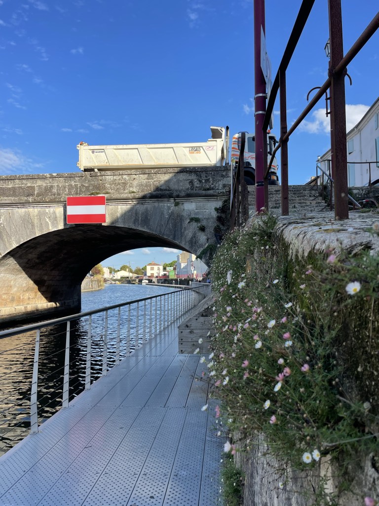 Marans. Passerelle pour passer sous la route. C’est la seule route qui va à Nantes donc défilé de voitures et de camions.