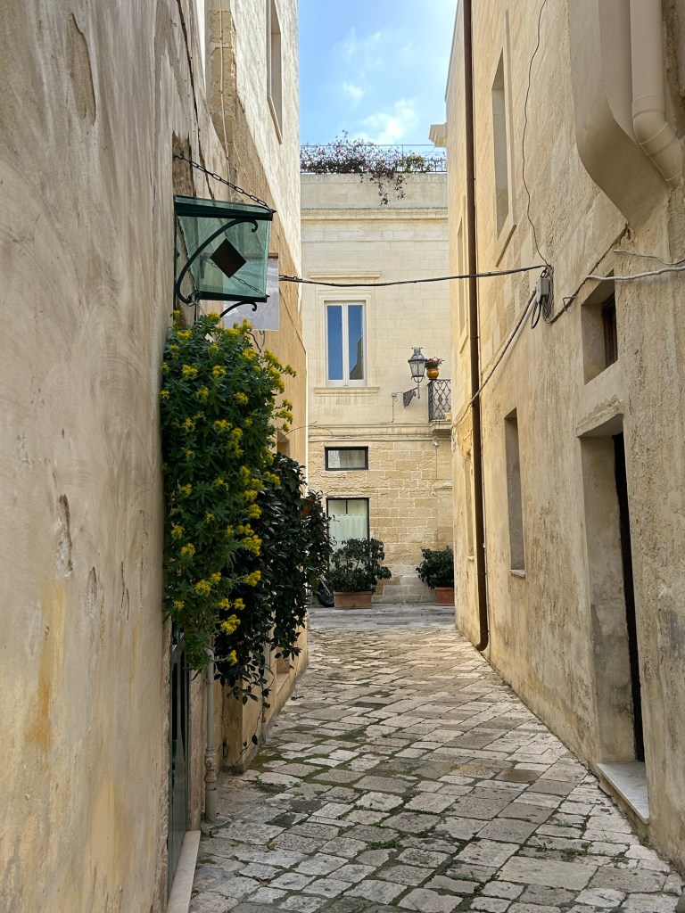 Un grand merci, Aline, pour ton fantastique reportage sur la ville de Lecce (que je ne connais pas). Je l’imaginais essentiellement baroque avec des balcons sublimes surchargés de plantes. Alors, que j’ai découvert grâce à tes photos de belles demeures de toutes les époques. C’est l’Italie ! La bella Italia !! Profitez bien de votre escapade méridionale. Quant à moi, je suis de plus en plus raide et souffreteuse … On a fait 14 trous hier – et aujourd’hui, j’ai les articulations des hanches qui grippent … Restez en bonne santé ! Gros bisous Barbara