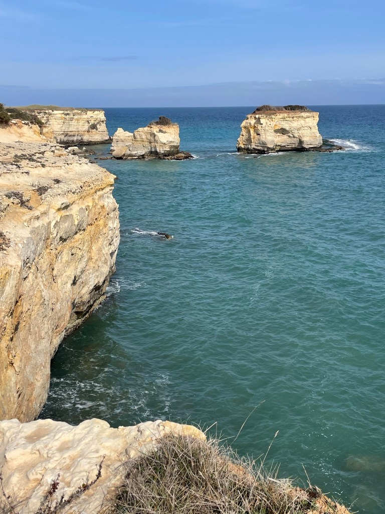 Je suis en train de me réconcilier avec les Pouilles. Nous marchons sur les falaises, il n’y a plus tous les déchets ramenés par la mer ou déposées par les gens… hier j’ai vu des milliers de bouchons de bouteilles d’eau et tant d’autres déchets en plastique.
