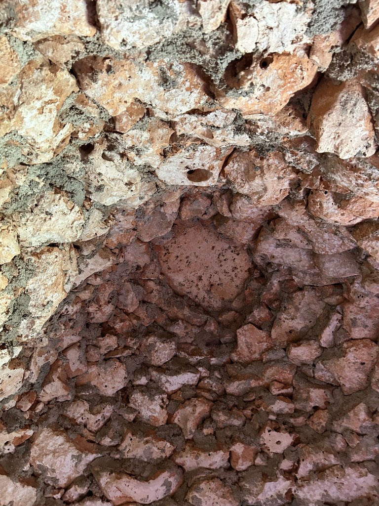 Il doit y avoir longtemps que ces décorations sont là car on ne peut plus lire ce qui est écrit sur le rond blanc.