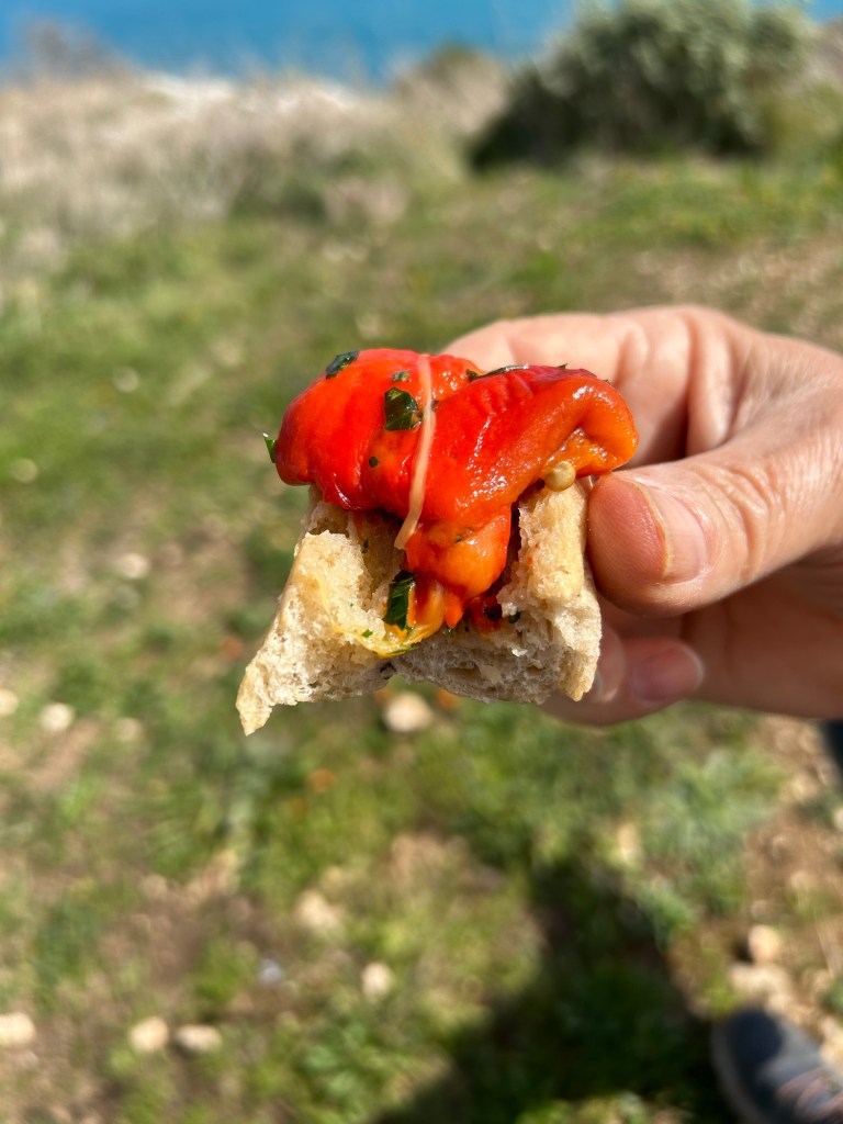 Que mangeons-nous ? Du pain aux olives avec des poivrons grillés !!!