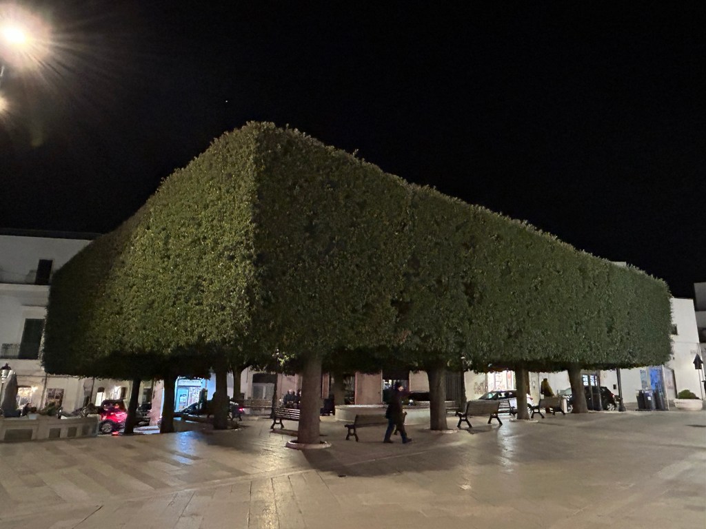 Que de bons souvenirs; Alberobello, les petits murets typiques, les oliviers, la place aux arbres taillés en carré ! L’an dernier déjà!