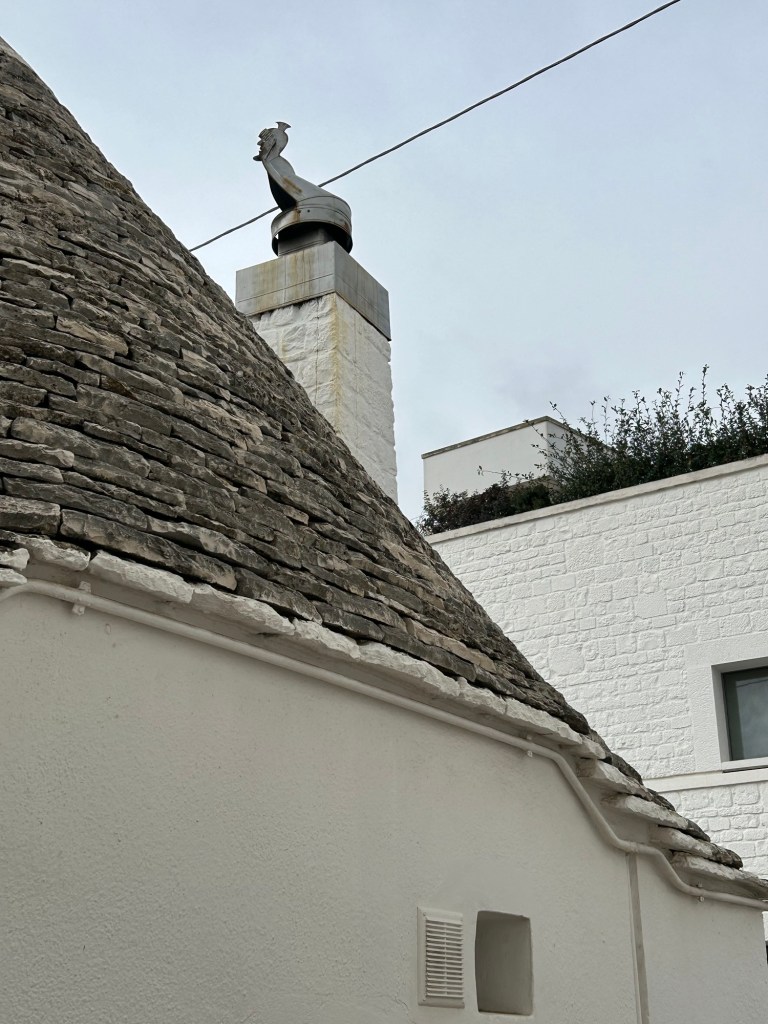 En partant vers Locorotondo, nous découvrons de nombreux trulli. Avec le vent qu’il fait, la girouette tourne sans arrêt.