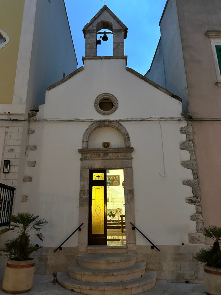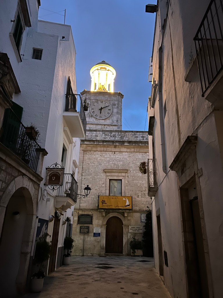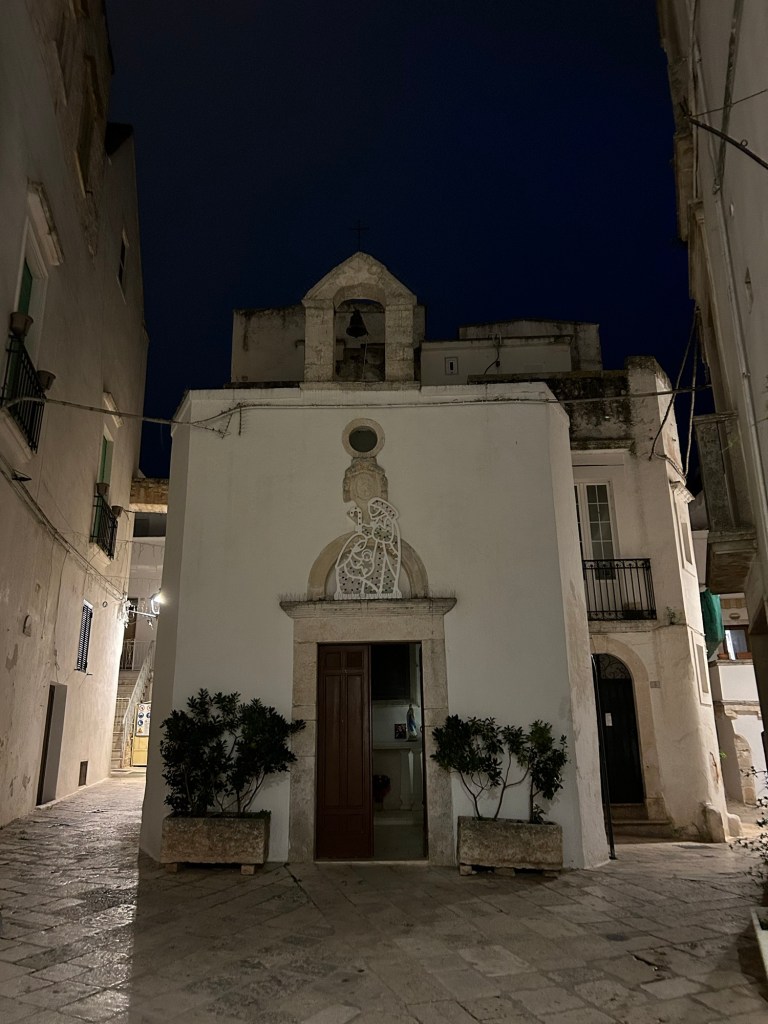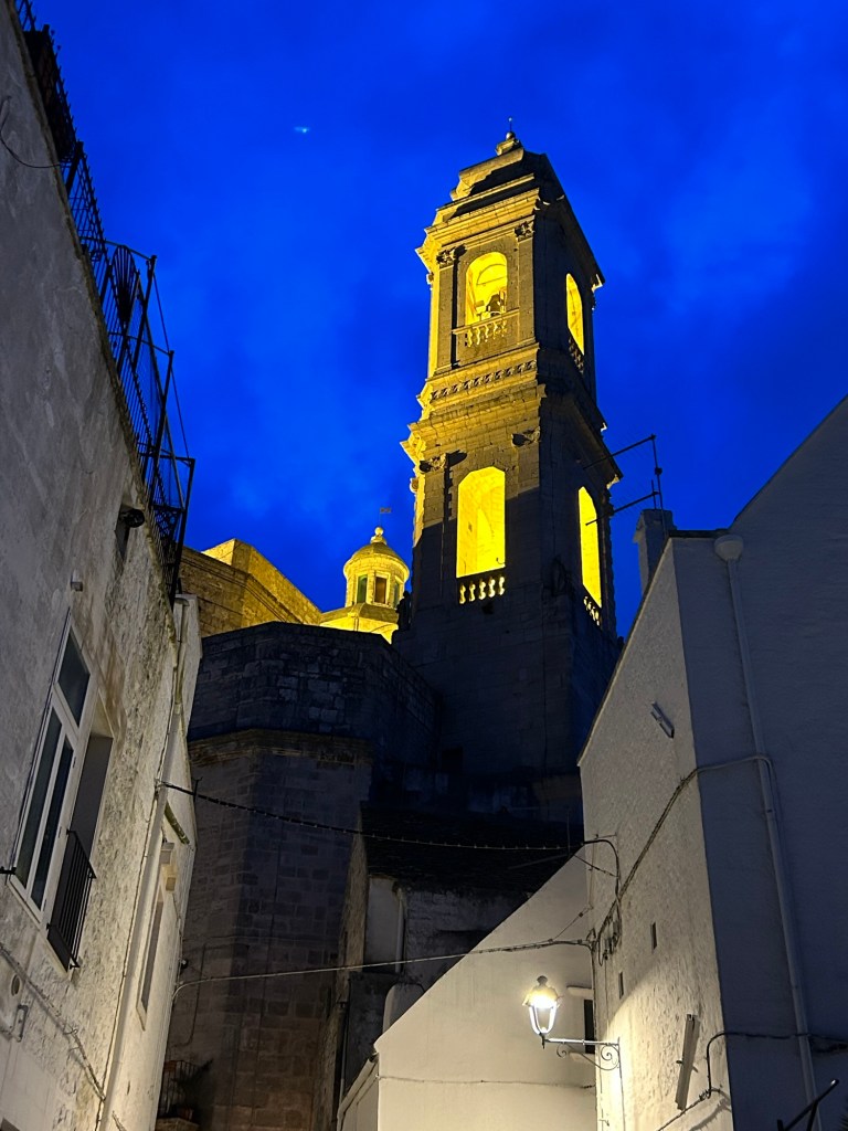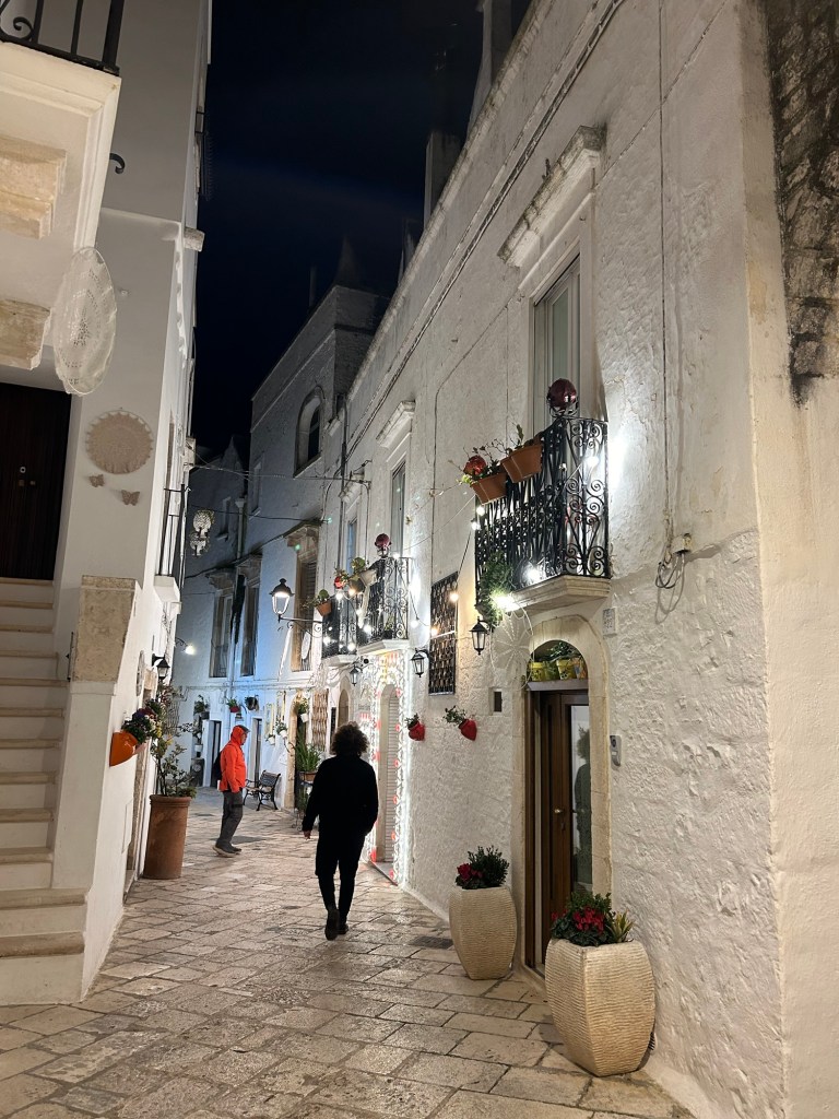 Locorotondo. Après un moment de repos dans notre chambre d’hôte, nous sommes allés tard nous promener dans le centre ancien, il faisait froid et toujours beaucoup de vent.
