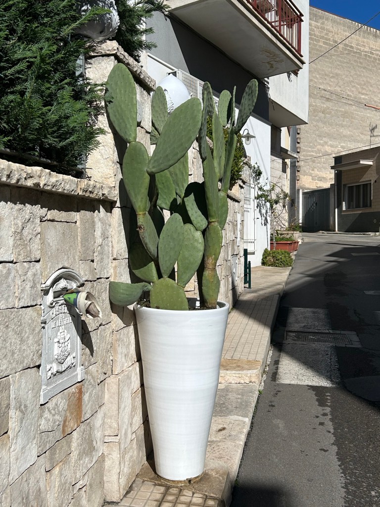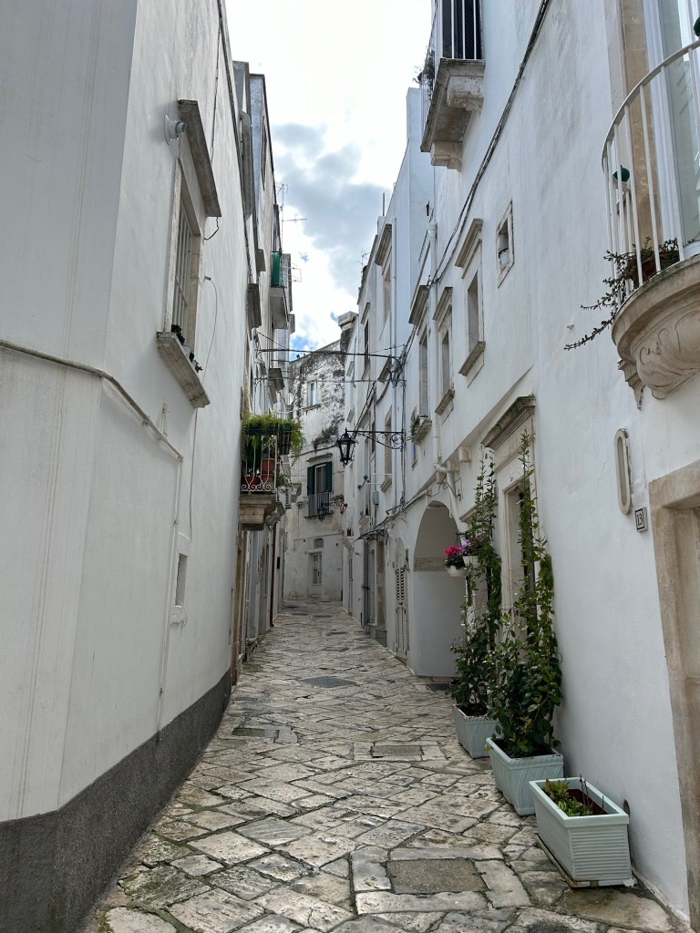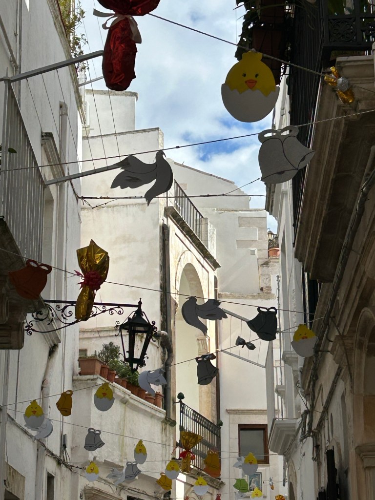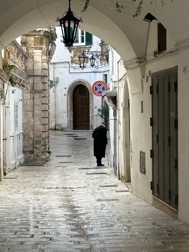 Comme il pleuvait trop fort ce matin, nous ne retournons pas visiter la partie ancienne de Locorotondo que nous n’avons vu que partiellement hier soir.