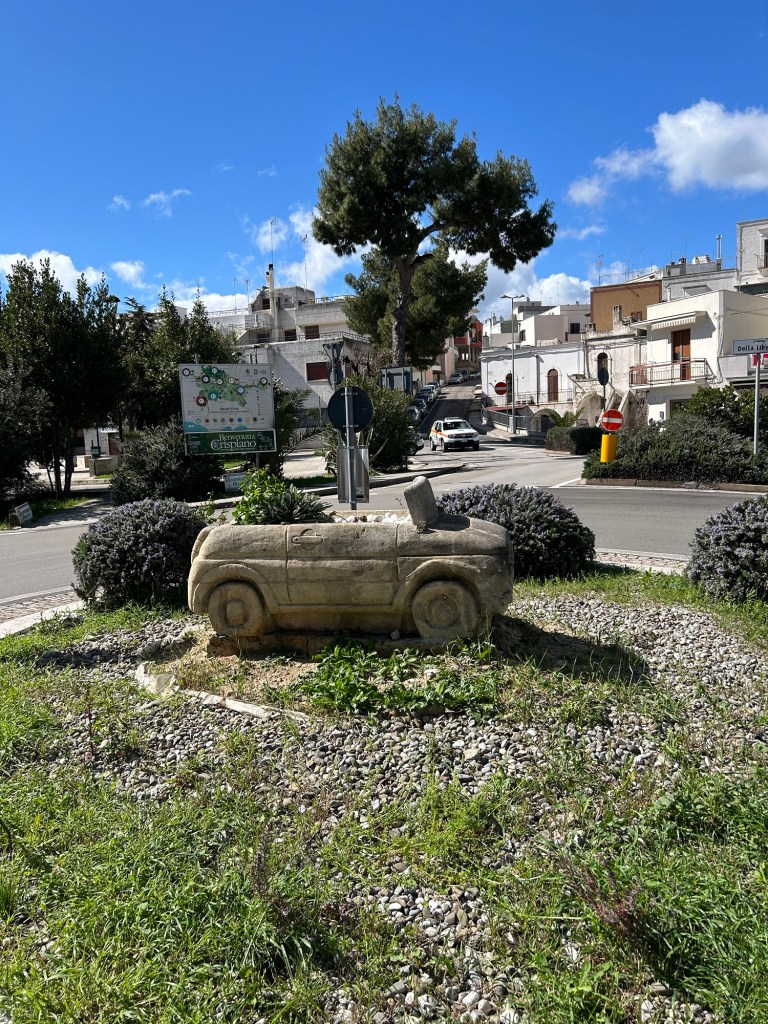 Crispiano. Ils ont aussi la voiture du Pétoulet, enfin presque la même que celle qui est devant le gymnase de Vergèze !!!