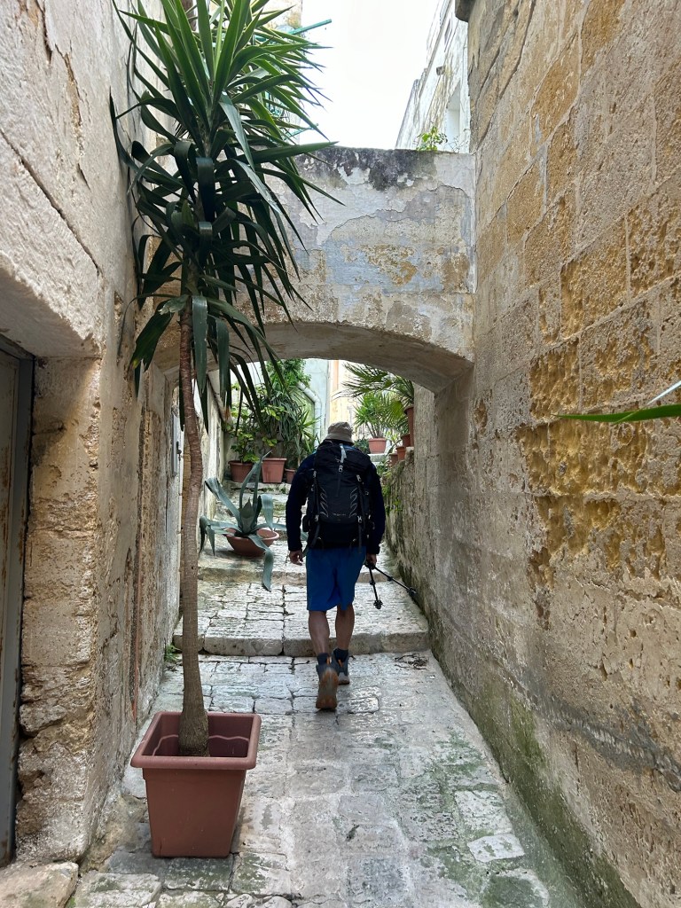 Ça fait 7 jours d’affilée que nous marchons, selon le sol ma cheville chante de temps en temps, nous allons rester 2 nuits à Matera et ensuite on verra…