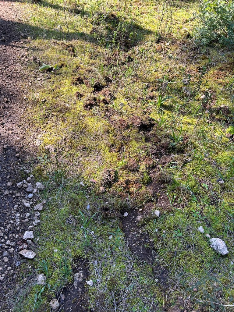 Lorsque notre taxi nous a déposé le chauffeur nous a dit : Attention, il y a beaucoup de sangliers !!! Effectivement, c’est labouré tout le long. Heureusement, nous n’en avons pas vu.