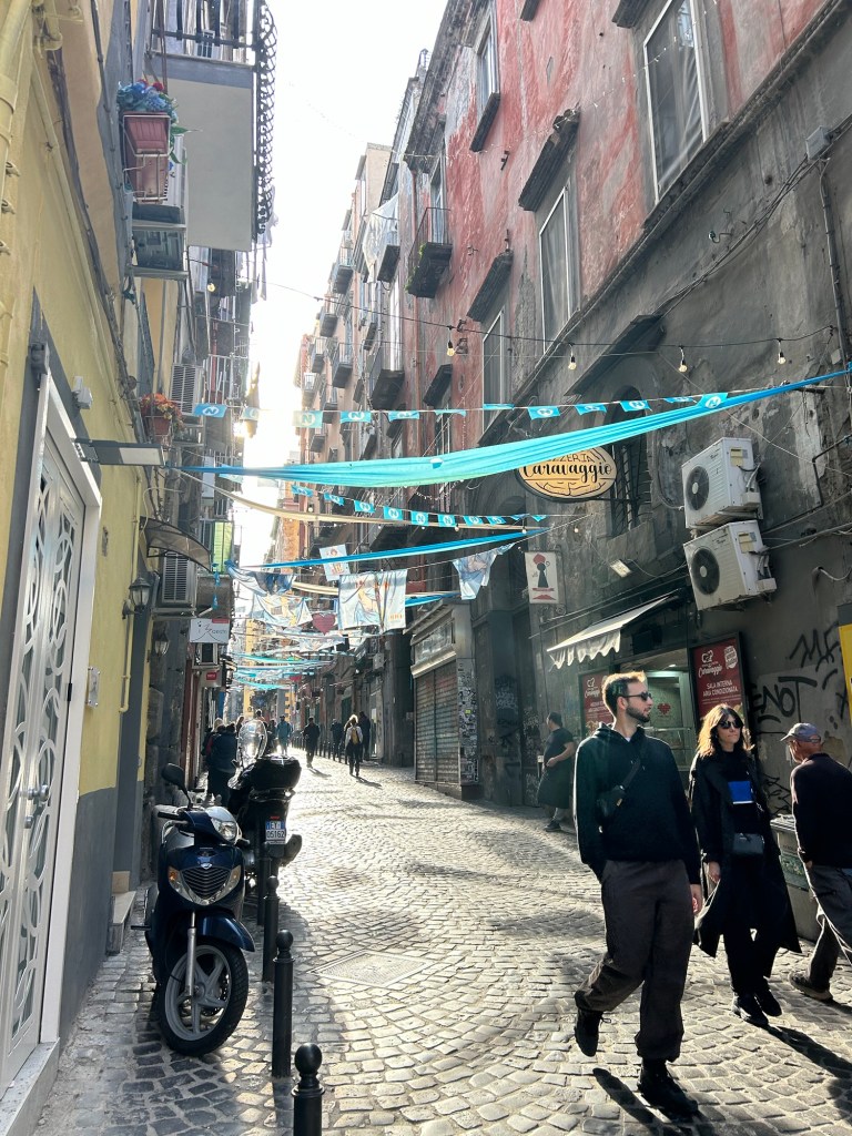 Nous prenons un bus pour aller à Salerne et un train pour arriver à Naples.