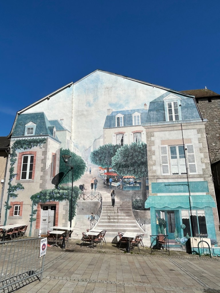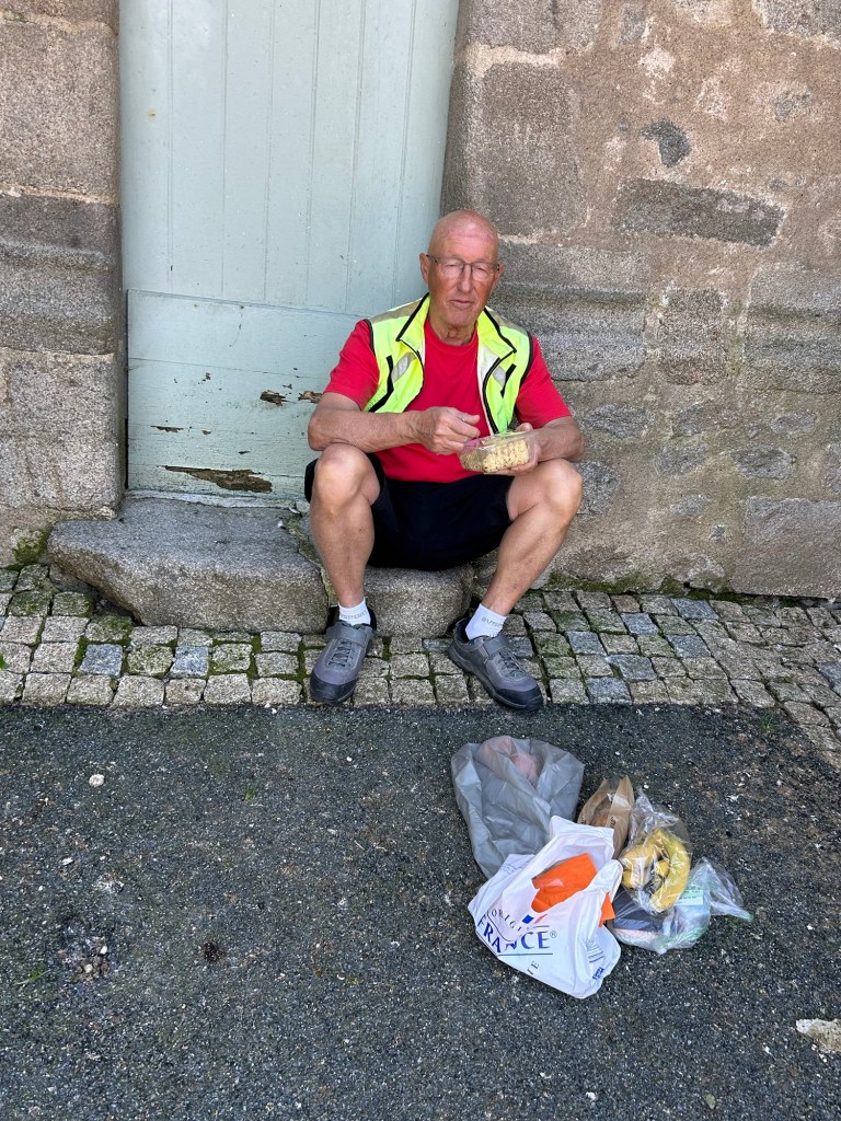 Arrêt pique-nique contre l’église du Grand-Bourg, il fait trop chaud sur les bancs de la place !!!