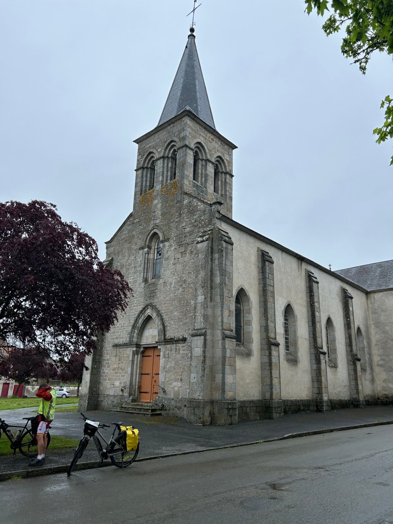 Lussat. Unique photo prise pendant le trajet en vélo. Il pleut depuis notre départ et il pleuvra plus ou moins fort jusqu’à notre arrivée à Aubusson