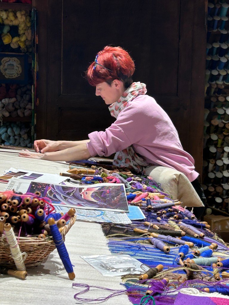Je vais essayer de voir le musée du carton, c’est le dessin qui permet ensuite de tisser le motif, la dame est seule et je ne verrai que son atelier. Je n’ai pas osé faire des photos.