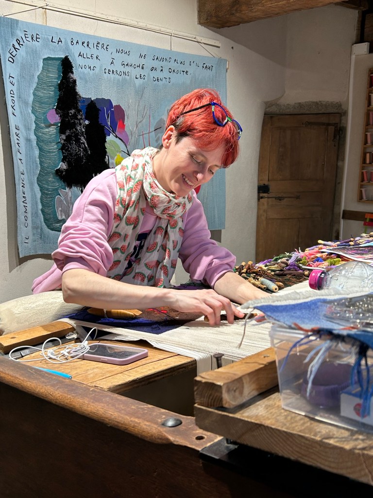 Maison du tapissier dans laquelle se trouve une jeune fille qui est en train de tisser pour la ville d’Aubusson une oeuvre de Daniel Riberzani.
