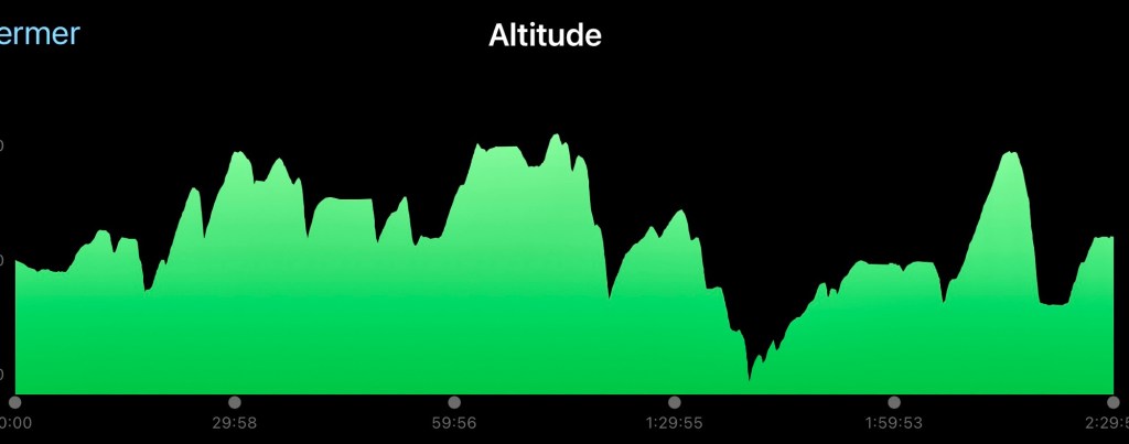 Les côtes étaient longues en début de matinée, je crois que ce sera pire demain, heureusement j’ai l’assistance, si je ne vide pas la batterie tout ira bien…