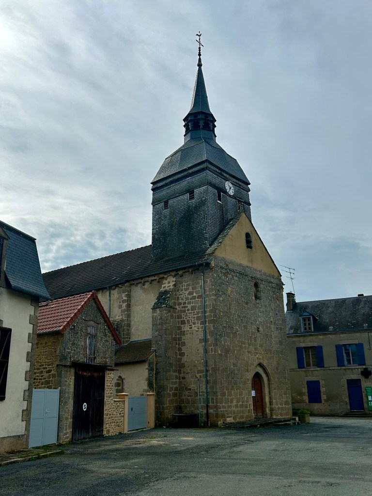 Bonnat. Église Saint-Sylvain avec des vestiges des fortifications du 14e siècle.