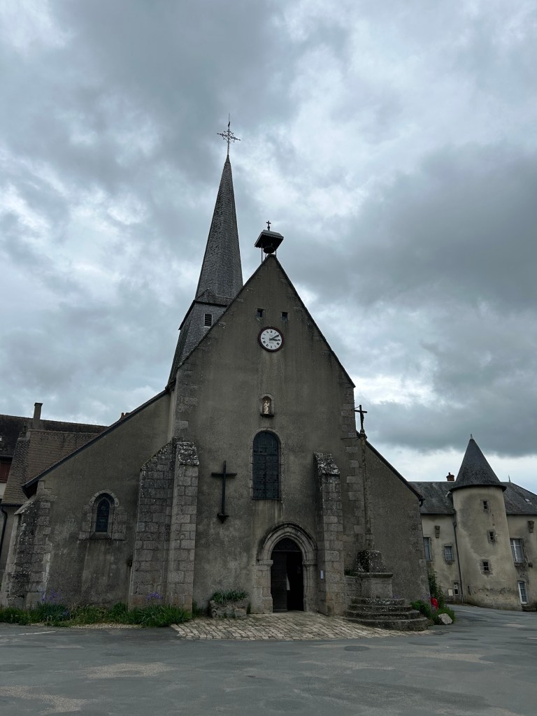 Arrêt pique-nique contre l’église du Grand-Bourg, il fait trop chaud sur les bancs de la place !!!