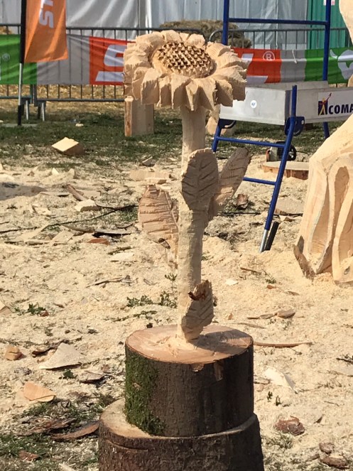 Un gentil élagueur nous offre de garer nos vélos dans son stand afin de pouvoir aller acheter à manger plus facilement.