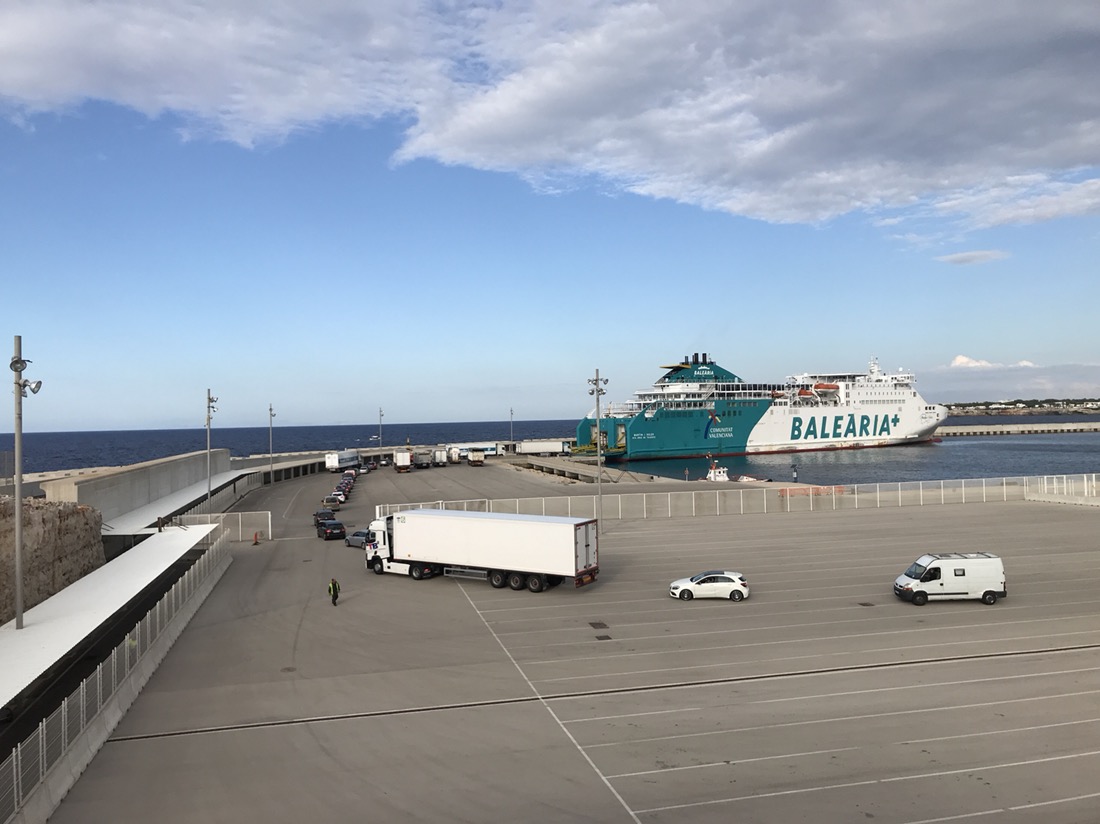 Traversée de la partie industrielle du port. J’ai fait une erreur, le port de Mahón est le deuxième port naturel du monde, pas d’Europe, après Pearl Harbor. 5 km de long, 1 km de large.