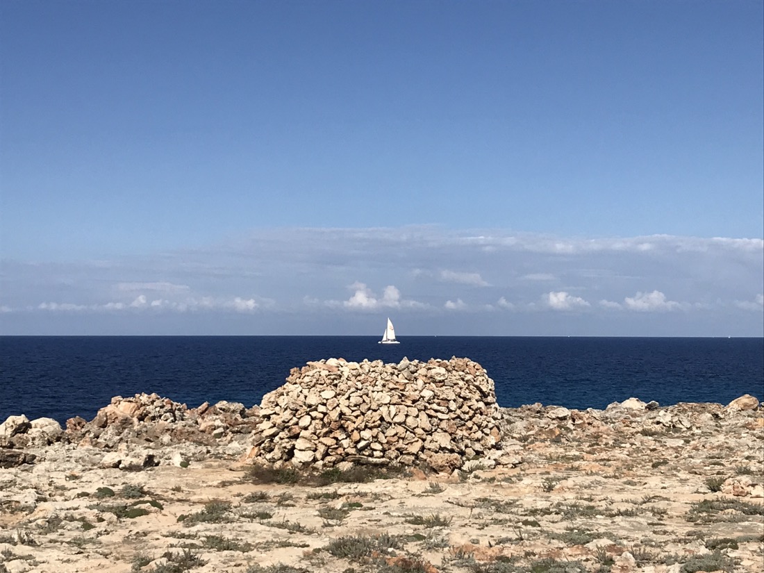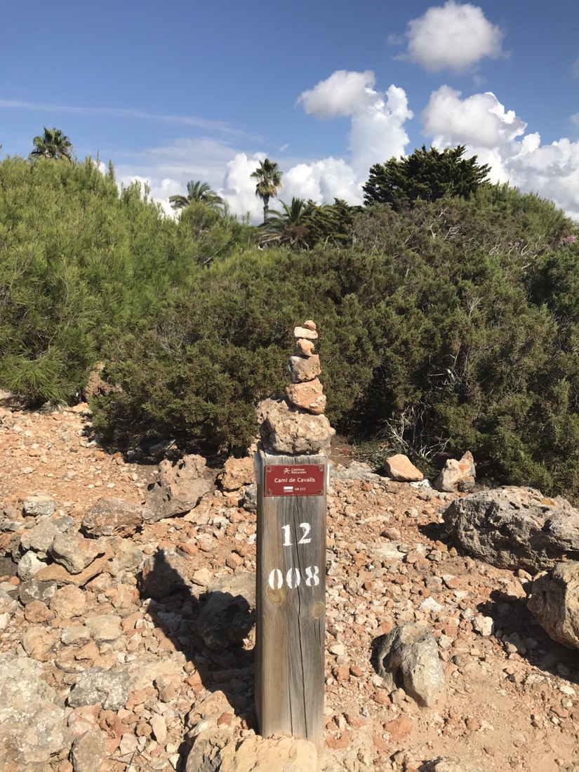 Au départ nous ne pensions pas faire une aussi longue journée. Il n’y a pas d’hébergement entre Mahón et Arenal d’en Castell. Nous avions prévu 2 échappatoires Es Grau et Faváritx, au niveau de ces deux lieux il y a un accès par la route avec la possibilité de se faire rapatrier en taxi. Comme tout allait bien et que nous étions en forme nous sommes allés jusqu’au bout. Merciiii à notre entraînement sur le GR 223 en Normandie !!! Coïncidence amusante nous sommes aussi à Minorque sur le GR 223.