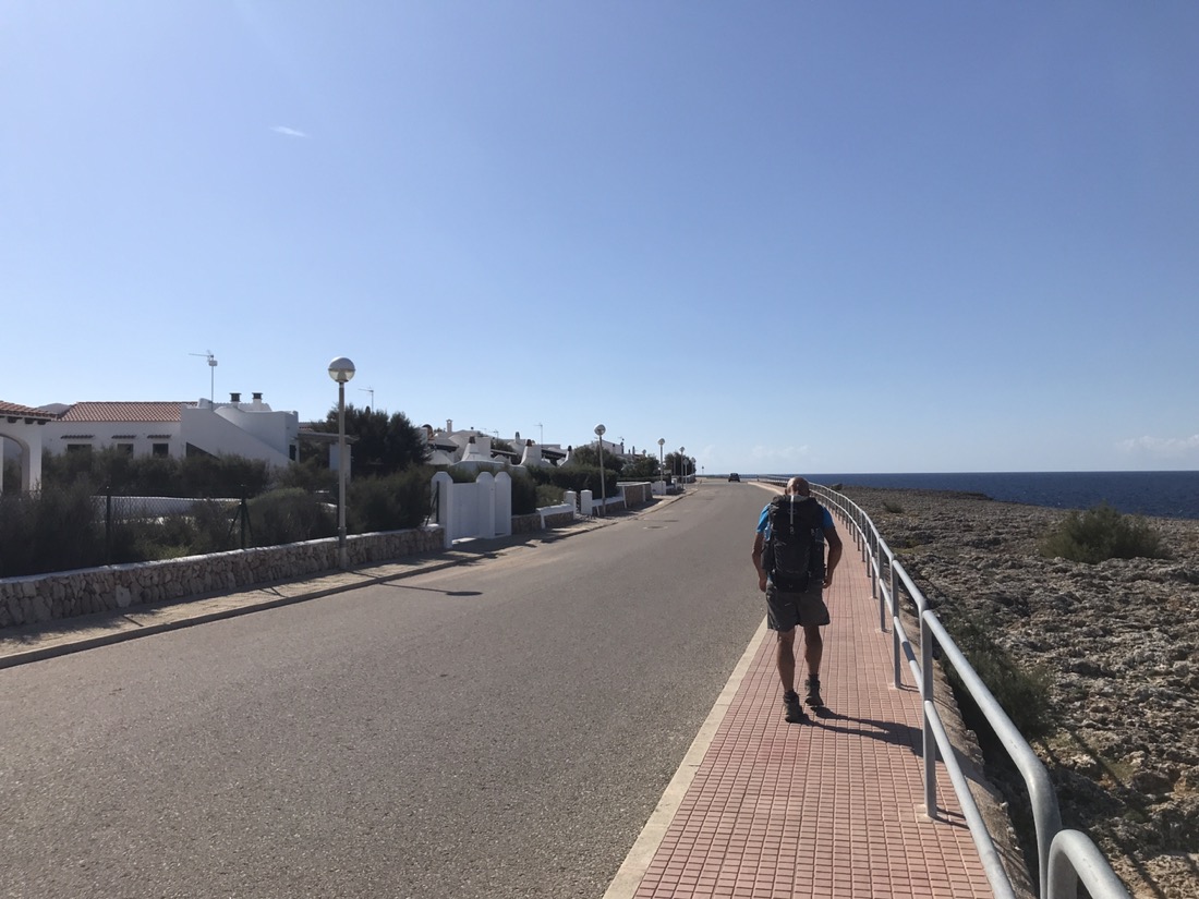 Nous cheminons sur une route pendant un moment, au loin Mahón.