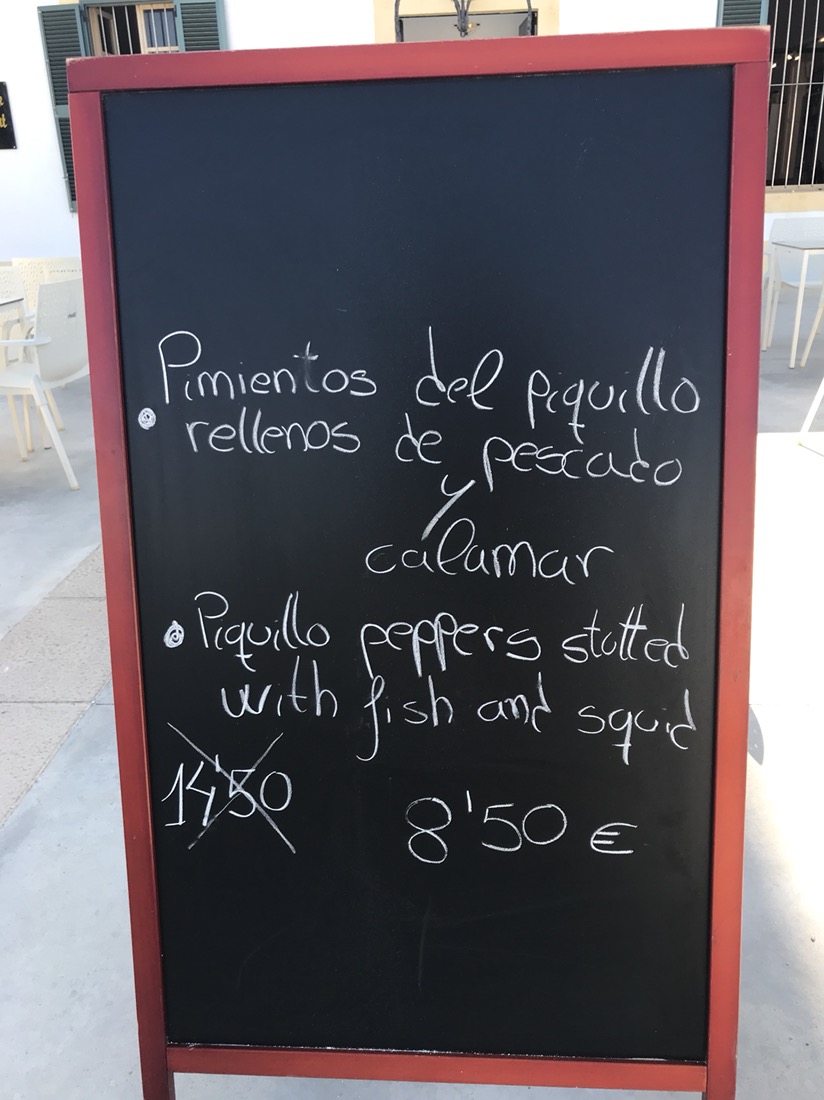 Es Grau. Arrêt pour manger des patatas bravas et boire une eau gazeuse, un complément à notre pique-nique acheté à Mahon, car c’était pratiquement 38 km sans ravitaillement.