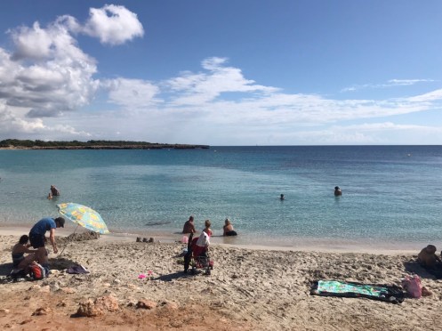 Cala Macarella. Beaucoup de monde sur cette plage et chance pour nous, une guinguette où nous avons pu manger, sinon nous aurions mangé notre boite de sardines avec du pain.