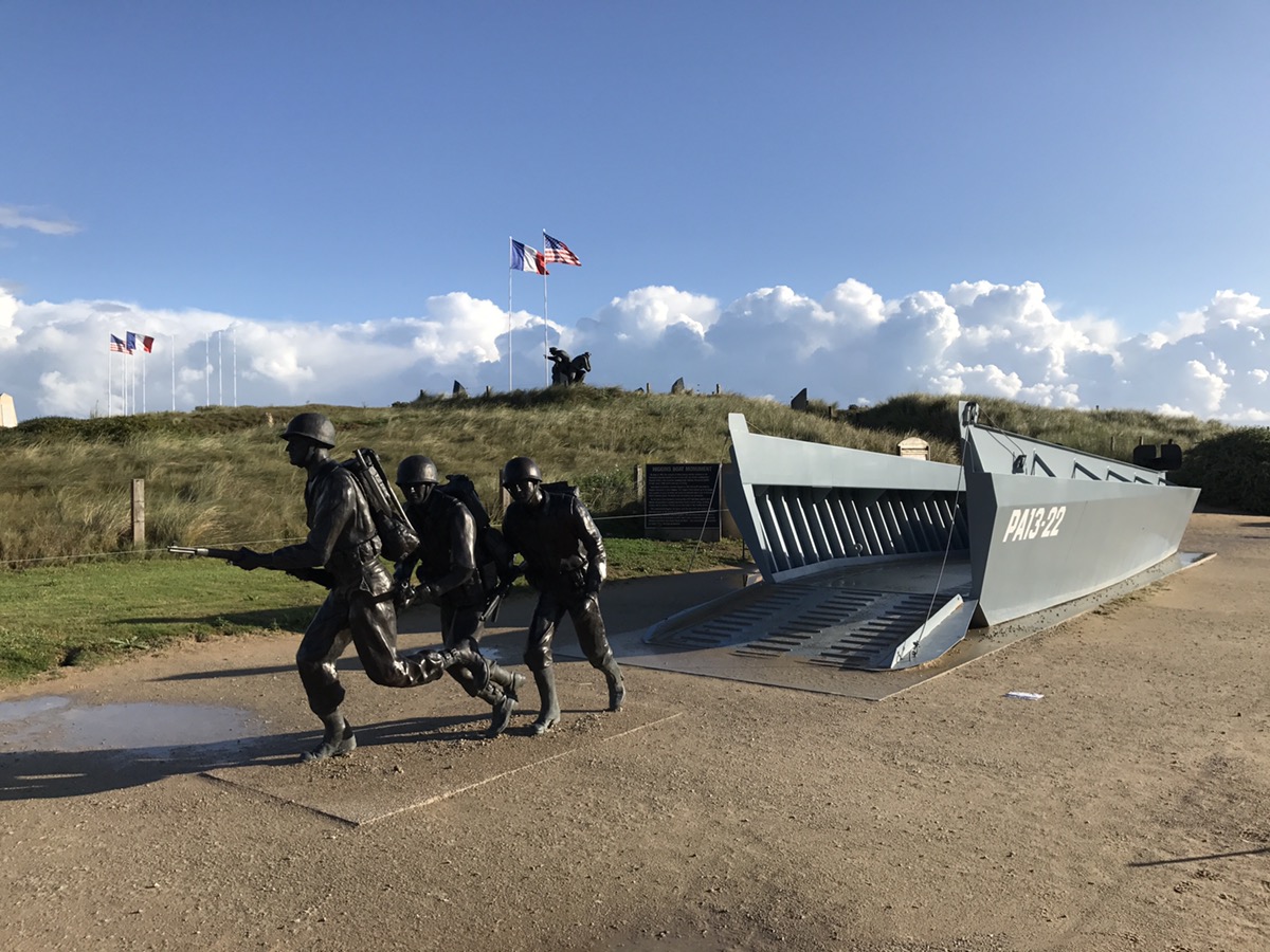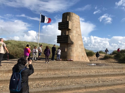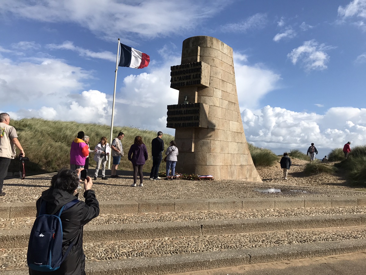 Nous retrouvons les touristes qui visitent les plages du débarquement au monument du débarquement de la 2ème DB.