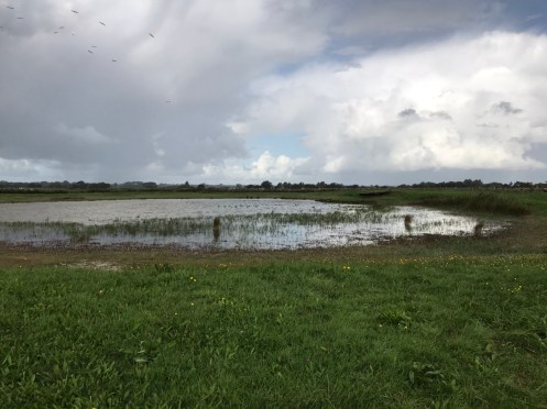 Petite étape sans grand intérêt à cause des nombreuses haies qui nous ont bouché la vue et du chemin le long du canal rempli d’orties.