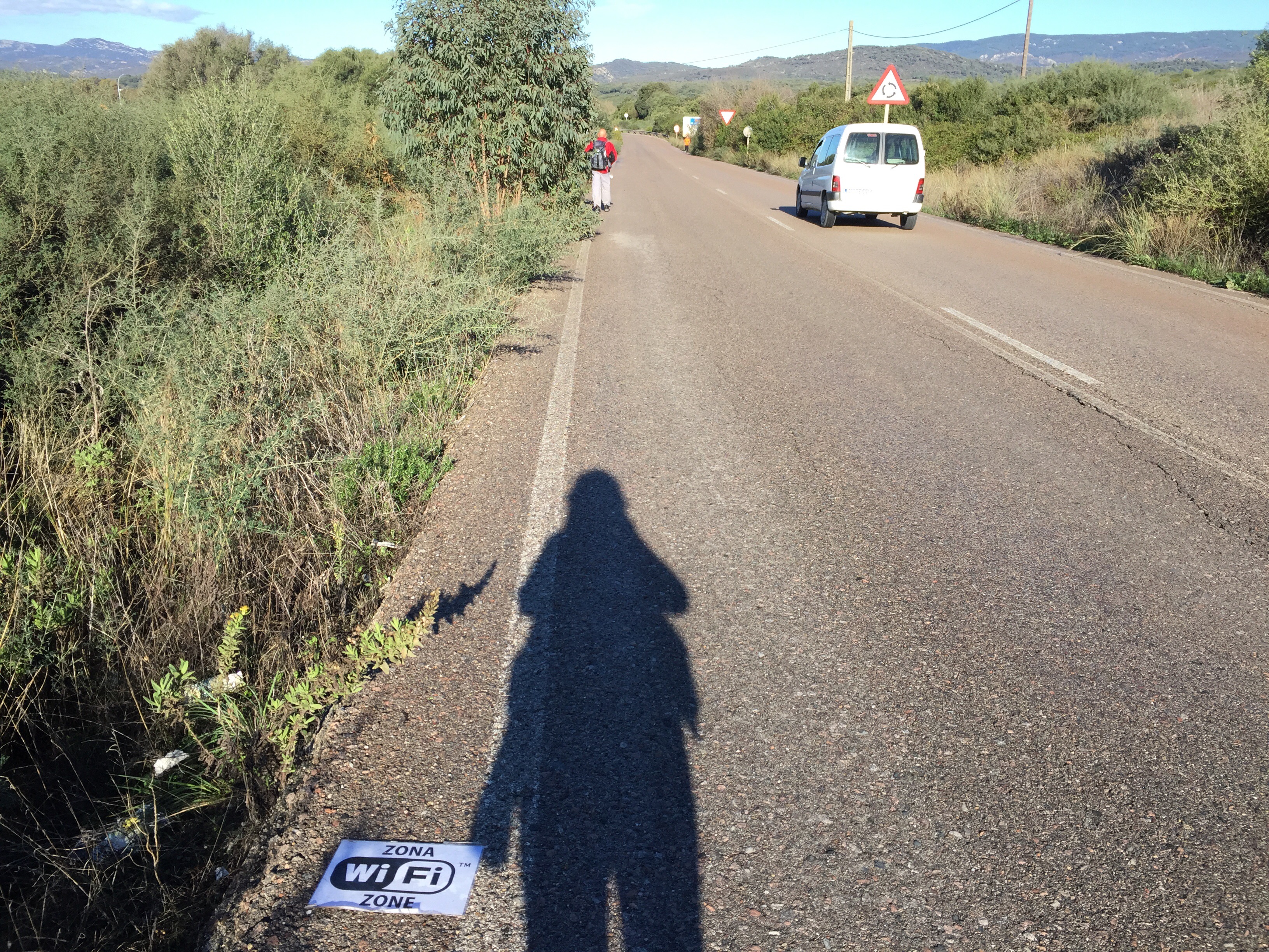 Lorsque nous sommes arrivés à Benaocaz il n’y avait plus de marque du GR. Nous avons regardé les traces GPS du Caminaire le site où je récupère le trajet mais lui, il avait évité le village. Donc on voulu regarder sur le livre où il y a le GR. Pas de livre dans nos sacs. Appel de notre logeuse qui l’avait trouvé et qui me propose de m’envoyer le livre dans une voiture pour la modique somme de 20 €. Moralité, quand on n’a pas de tête on a des sous !!!