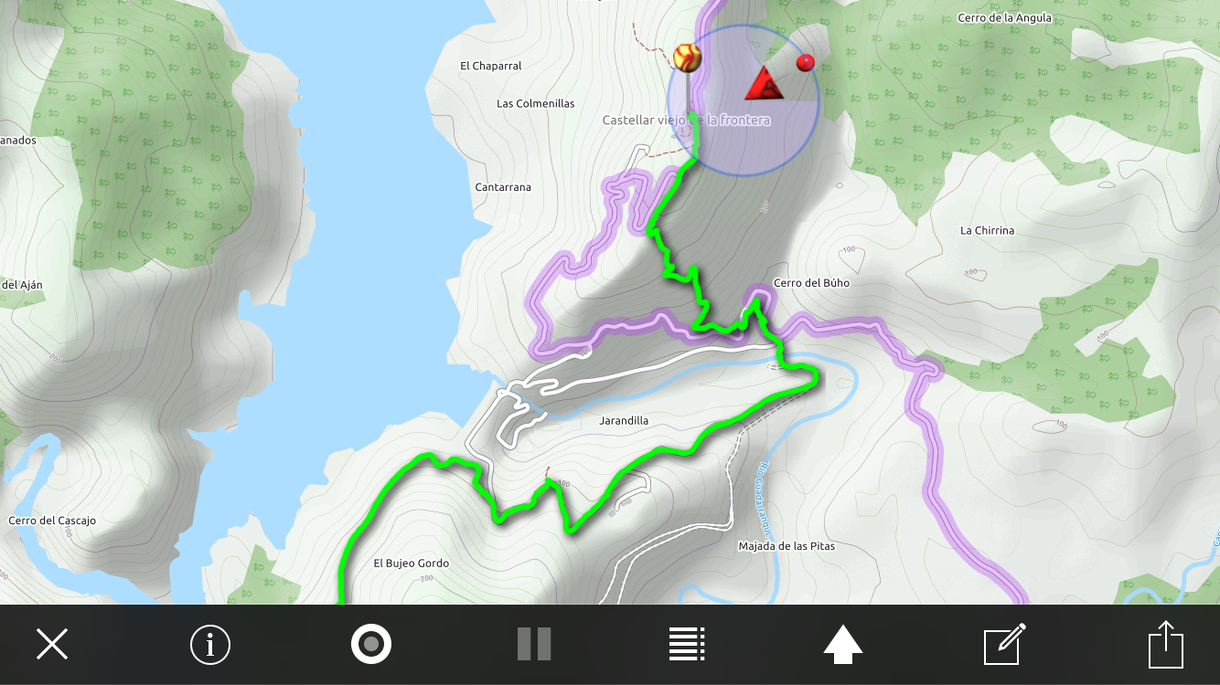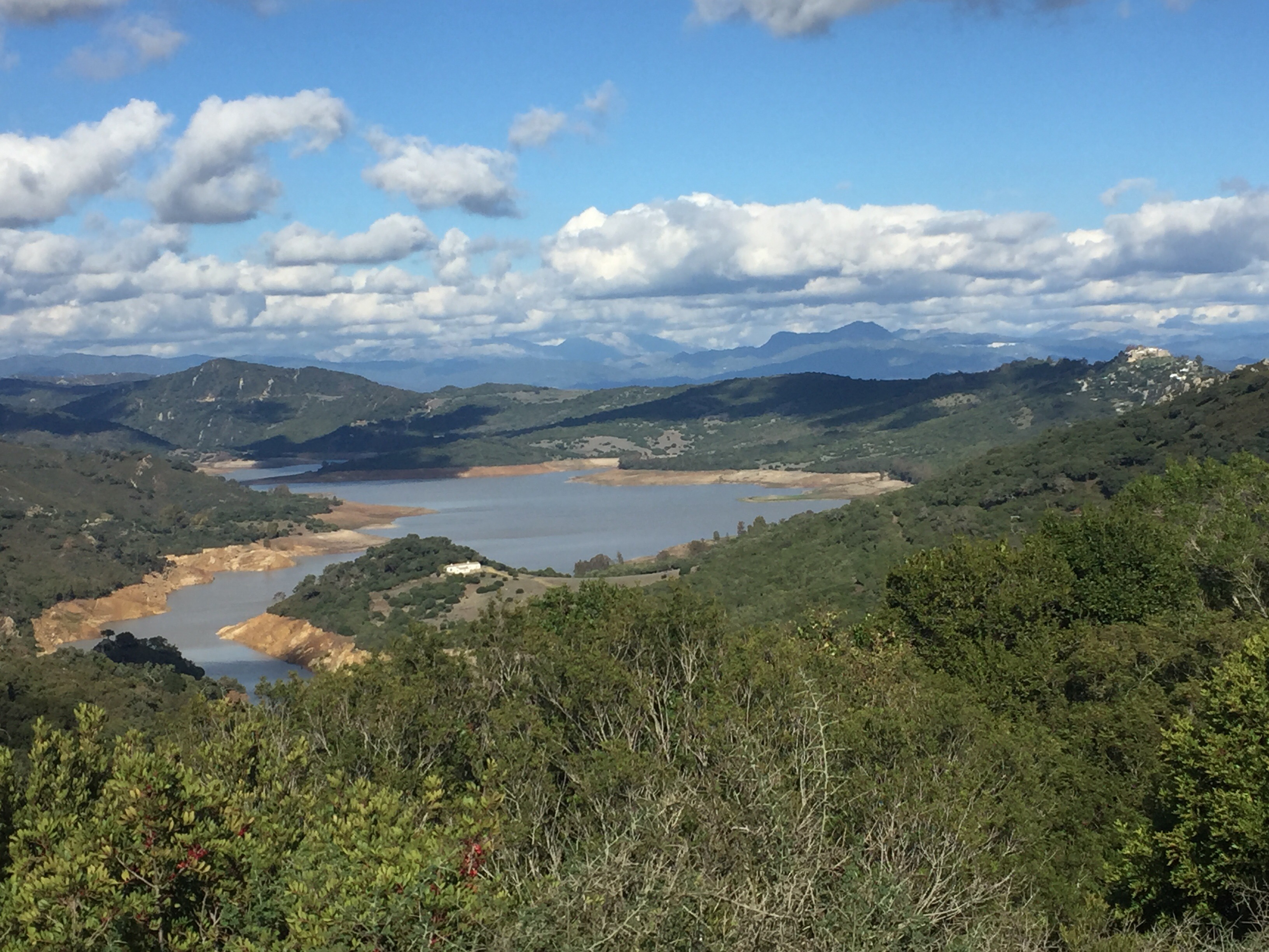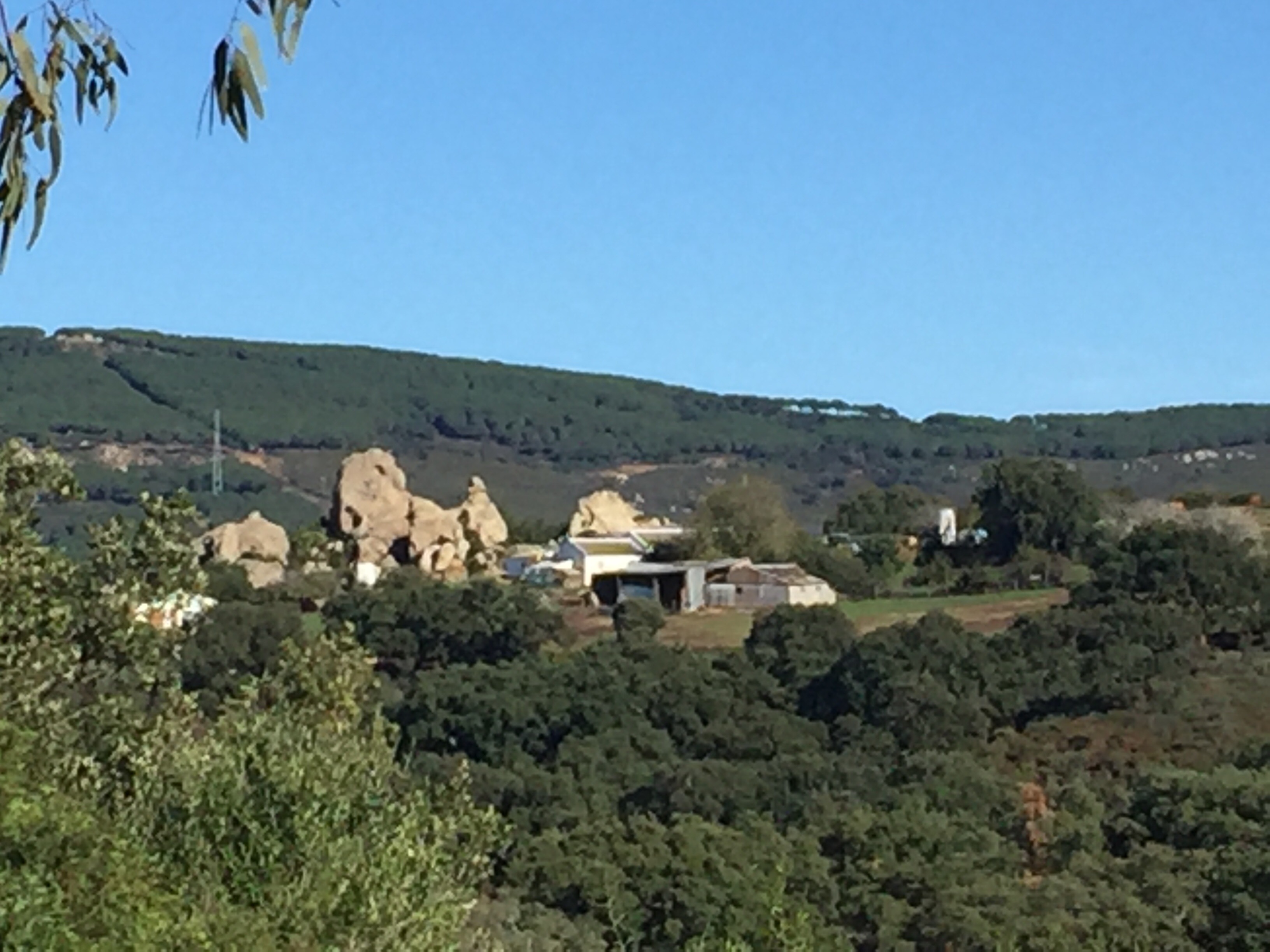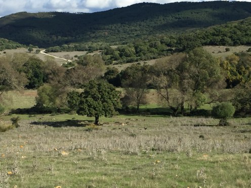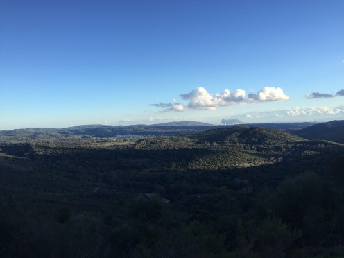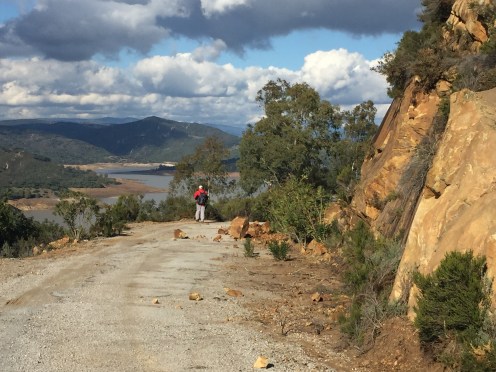 On se rapproche du but. Le barrage du Guadarranque et le petit mont sur la droite avec du blanc c’est Castillo de Castellar.