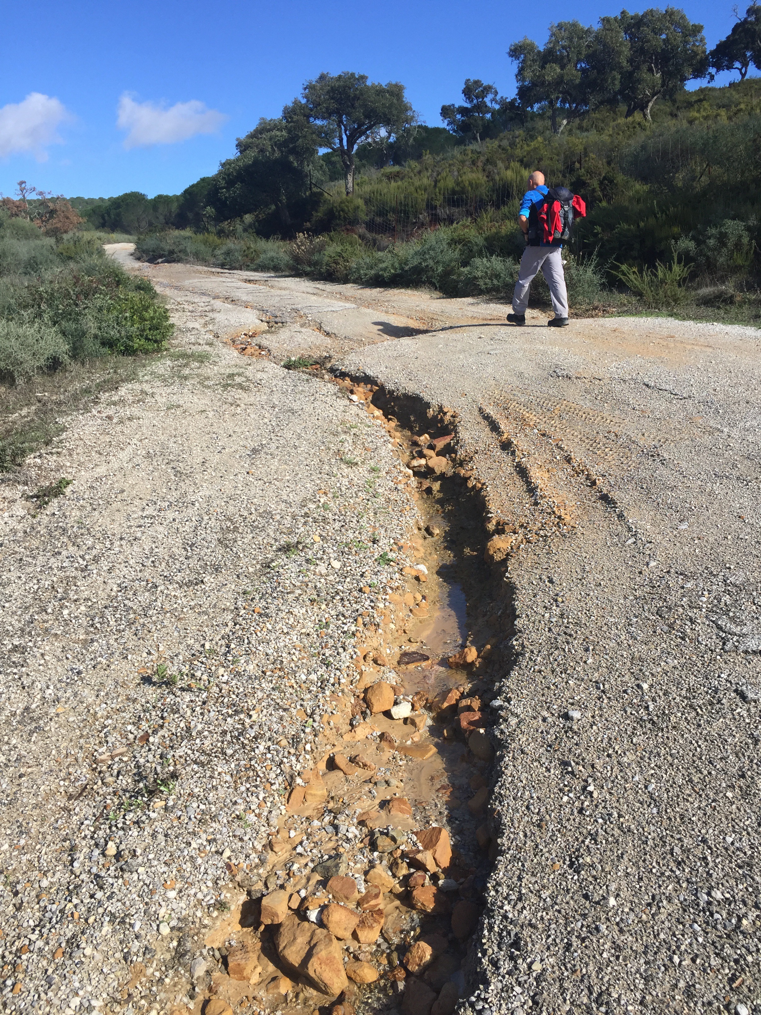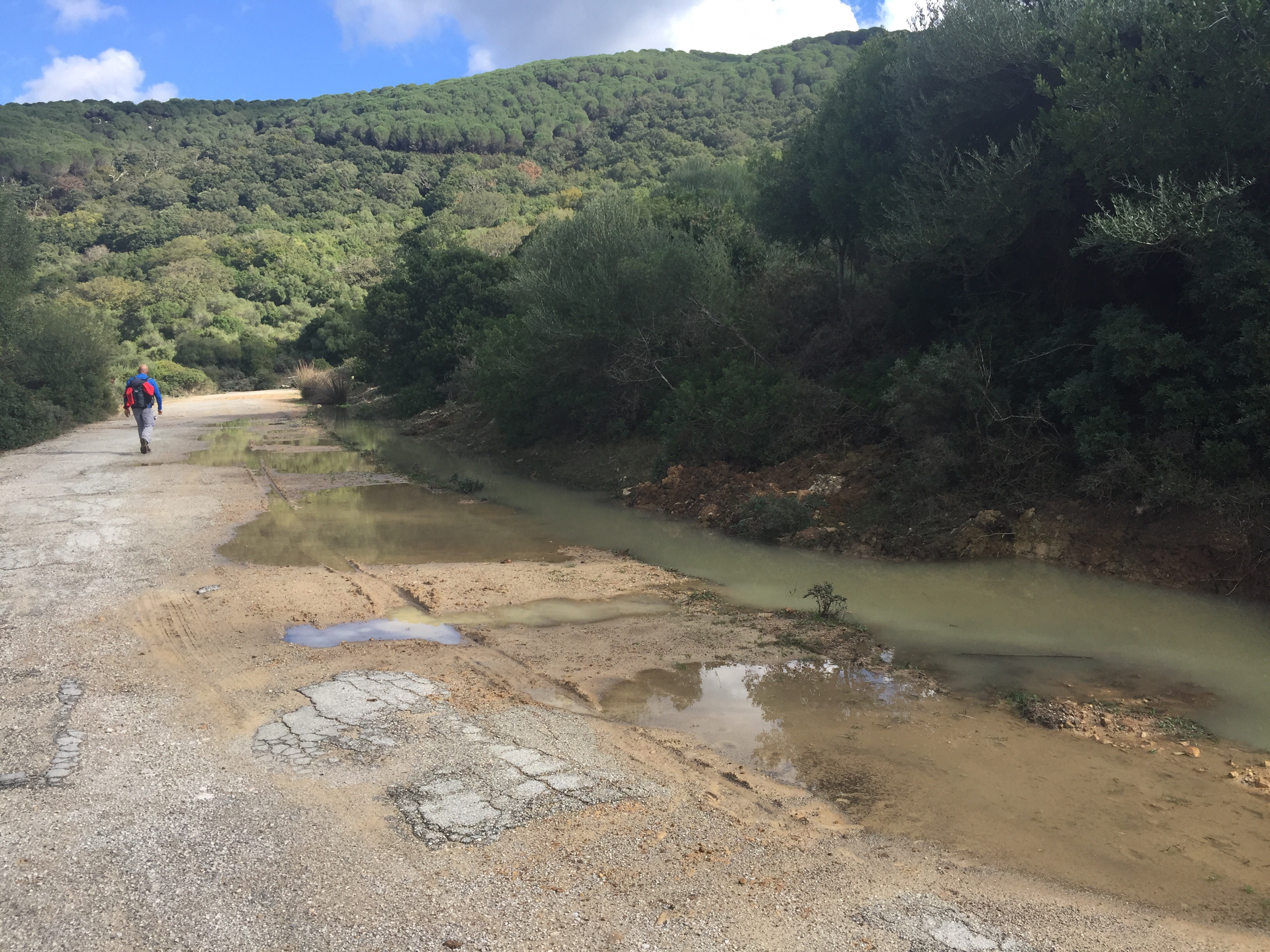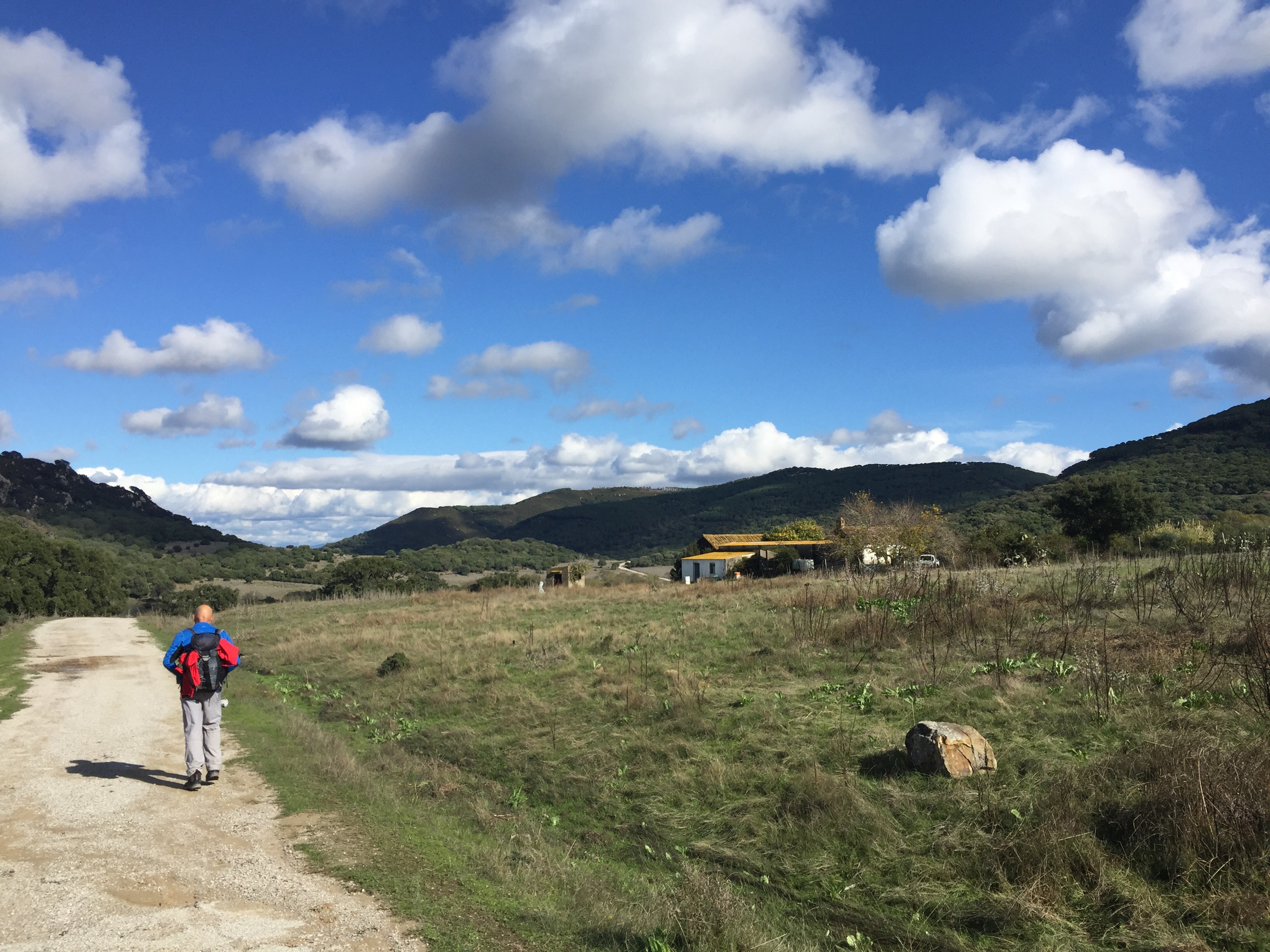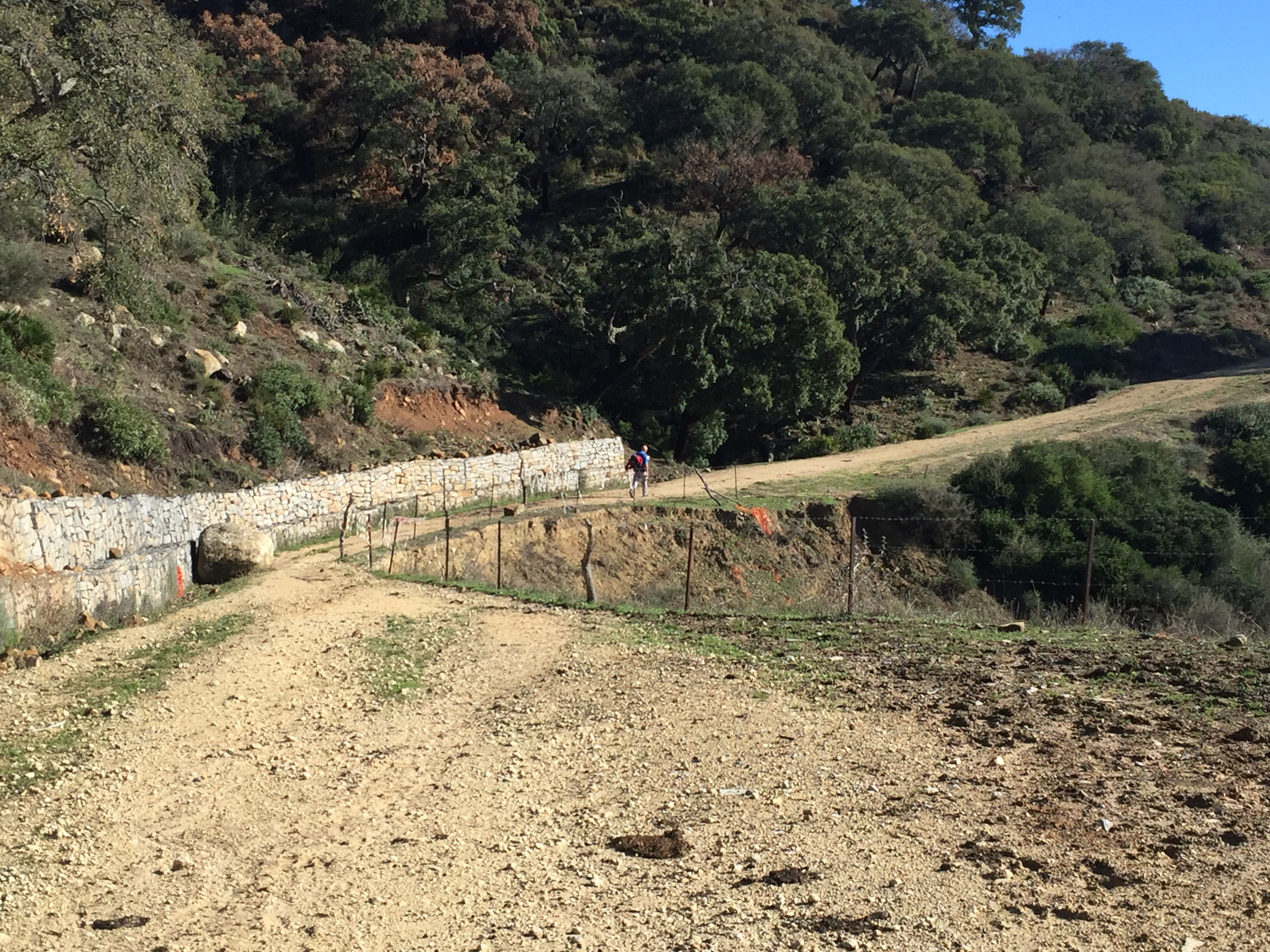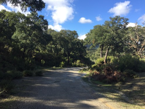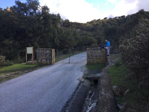 C’est lui qui conseillait de ne pas passer par le GR (33 km) et de prendre le chemin fermé : « La deuxième partie est problématique : des portails cadenassés se trouvent au col de Dos Hermanas d’un côté et à l’embranchement du barrage de Guadarranque de l’autre. Dommage car le passage par le vallon du Cortijo de Navahermosa ne pose pas de problème : la piste anciennement asphaltée est excellente. J’ai lu qu’il y avait eu des manifestations pour que ce chemin redevienne public. » Copié sur le site du Caminaire.