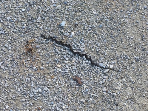La chaussée est surélevée par endroits.