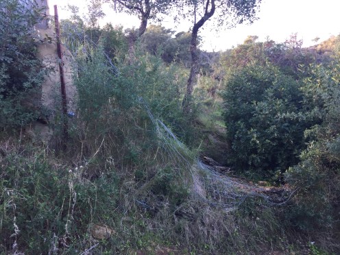Heureusement d’autres personnes sont passées avant nous et nous trouvons la clôture écrasée en contre bas.