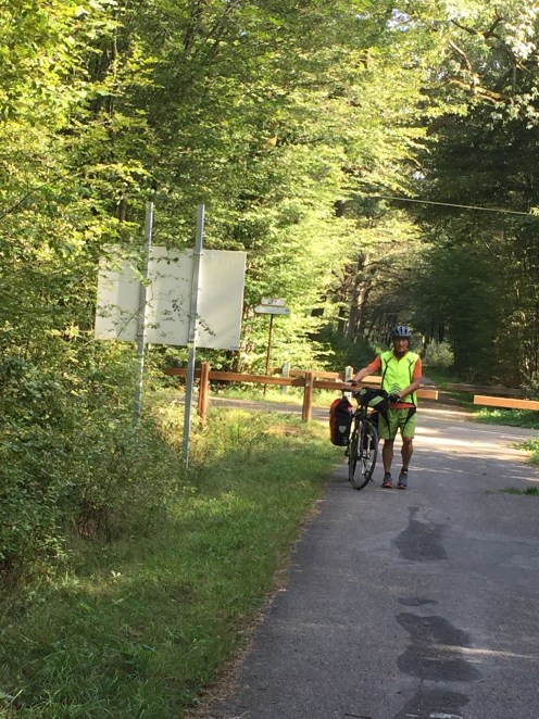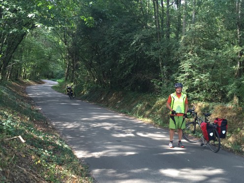 Adorable petit route qui descend tranquillement, bien ombragée, le rêve !!! Revers de la médaille quand c’est fini ça remonte et je finis la côte en poussant le vélo. Aïe aïe aïe !!!