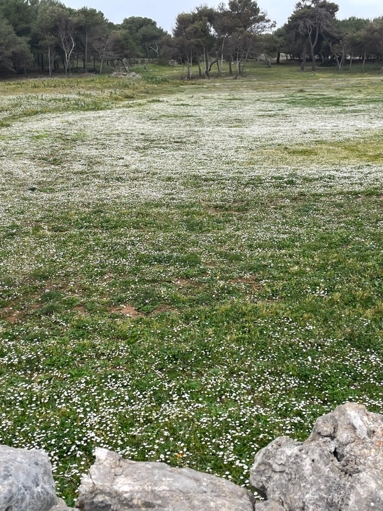 À la sortie de Salve, dans un coin à l’ombre, de la grêle. Ça a dû tomber vraiment fort hier !!!
