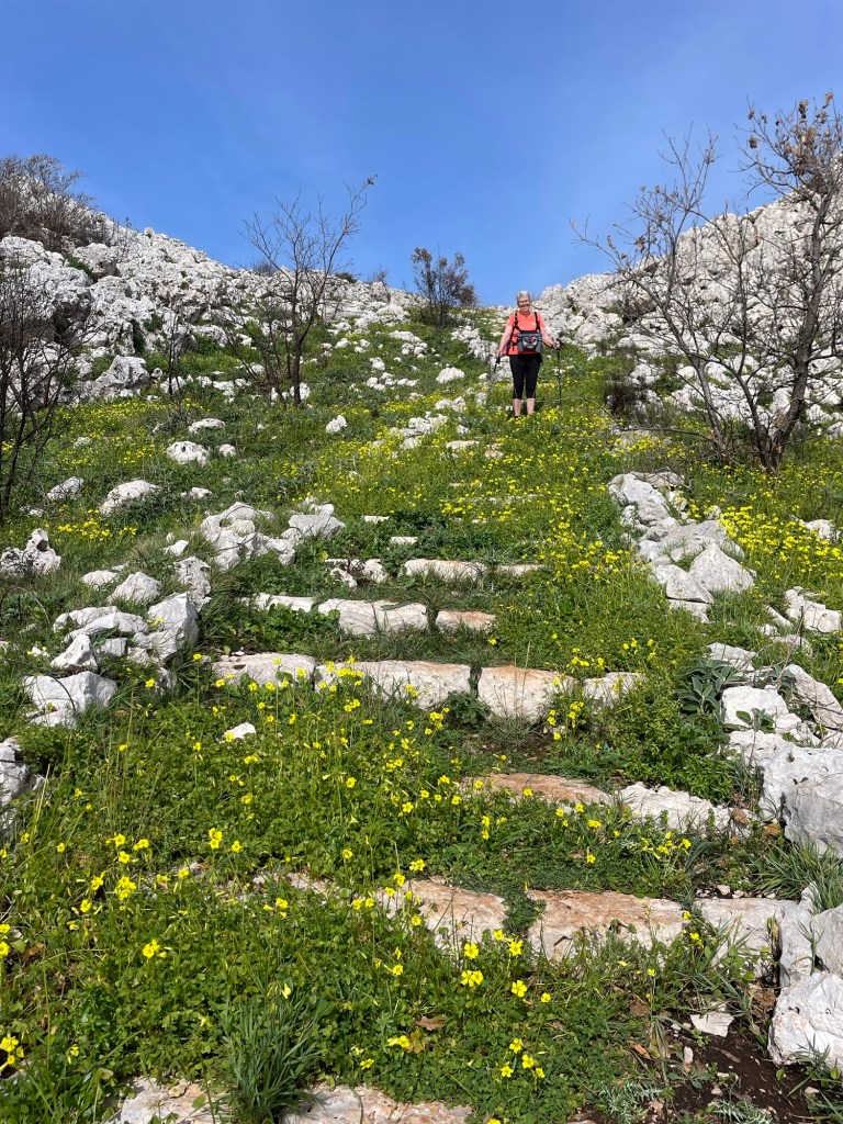 Encore une journée que nous avons beaucoup aimé. Les sentiers sont remplis de fleurs variées, c’est tellement beau que nous passons notre temps à essayer de les photographier. Il faisait très bon, la forte pluie d’hier avait juste laissé de la terre qui collait aux chaussures. Tout ne peut pas être parfait !!!