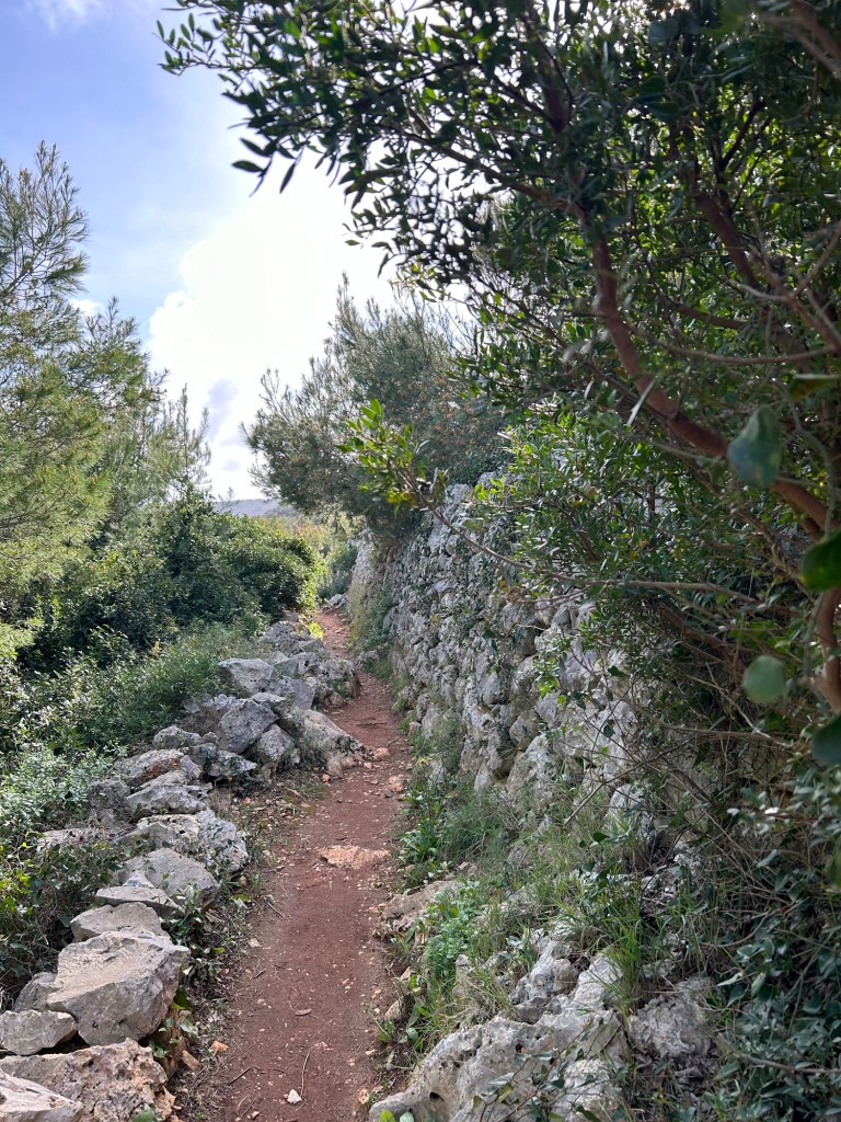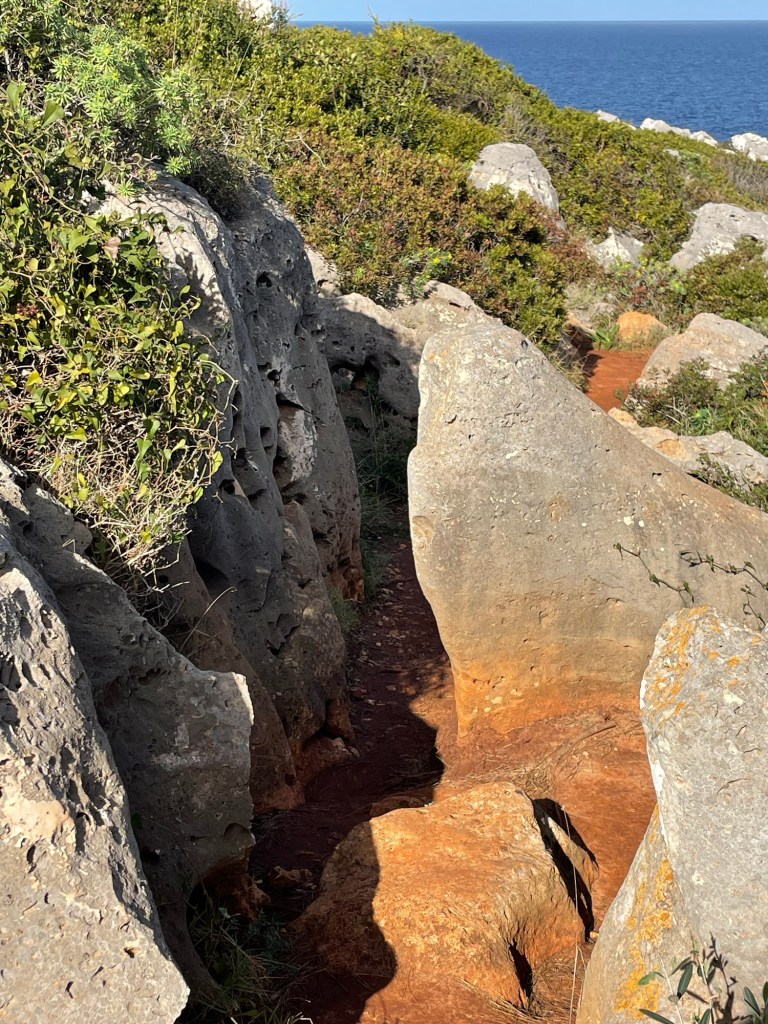 Petit sentier dans les rochers pour arriver à Porto Badisco.