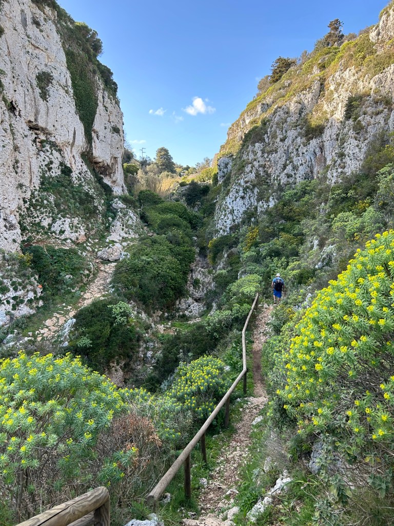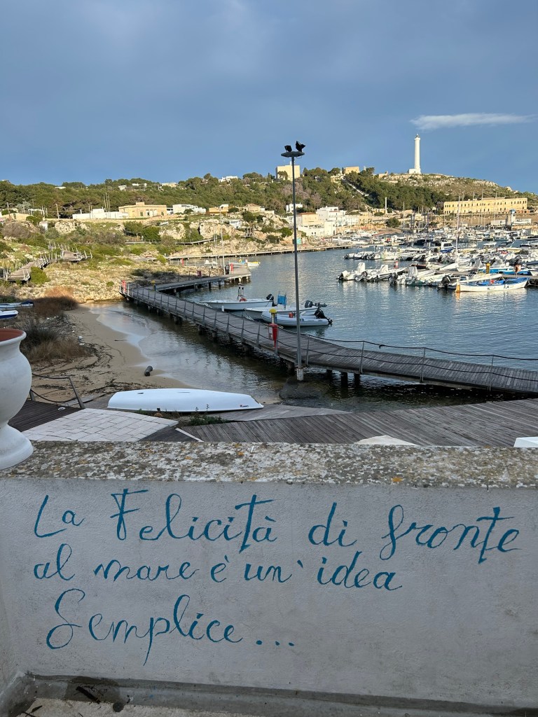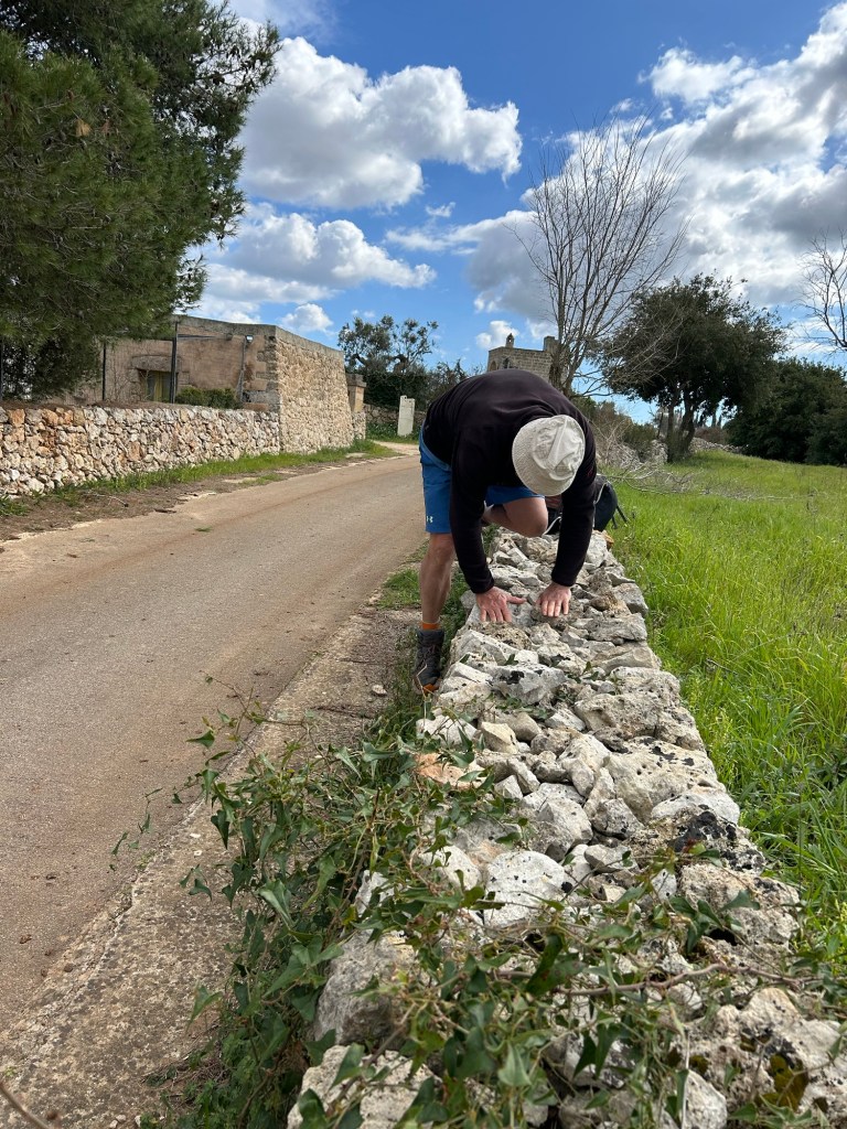 Je suis en train de me réconcilier avec les Pouilles. Nous marchons sur les falaises, il n’y a plus tous les déchets ramenés par la mer ou déposées par les gens… hier j’ai vu des milliers de bouchons de bouteilles d’eau et tant d’autres déchets en plastique.