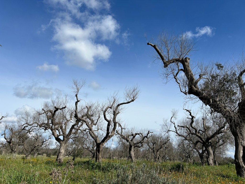 C’est un crève cœur de voir ces oliviers morts à cause de la bactérie Xylella fastidiosa.