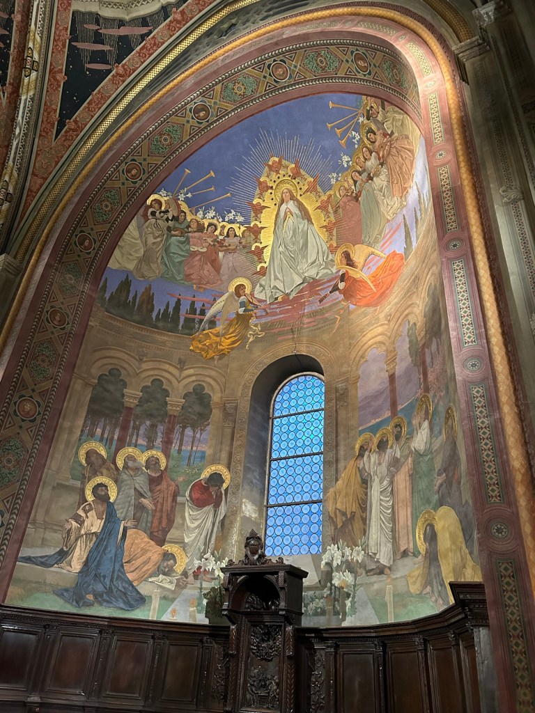 Il y avait une messe avec 2 prêtres agenouillés… donc je ne suis pas rentrée.
