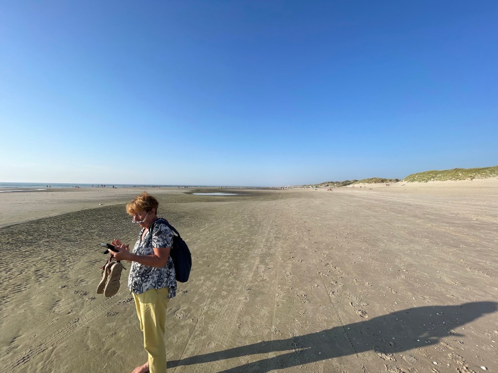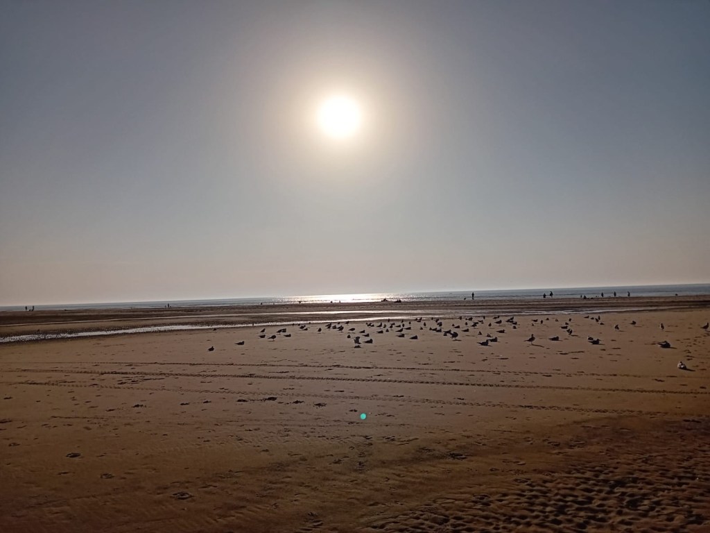 Enfin la mer à notre retour à Bray- Dunes. La marée est basse, la plage est immense.
