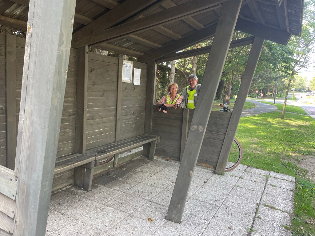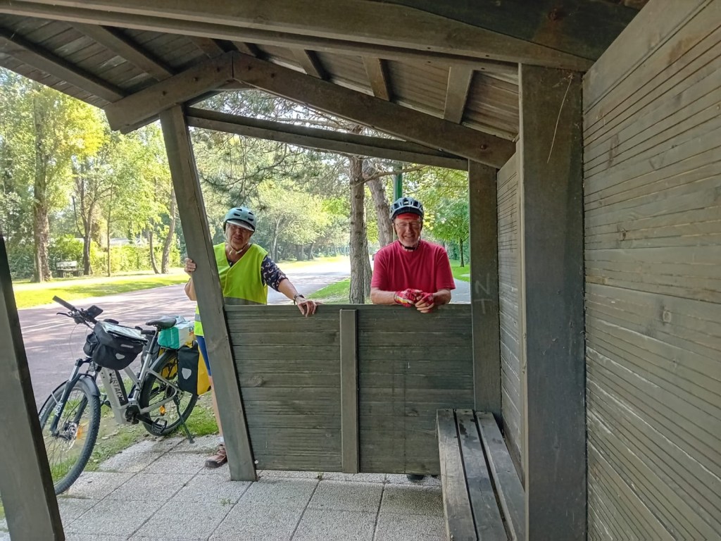 Notre salle à manger au bord de la piste cyclable. Très chouette.