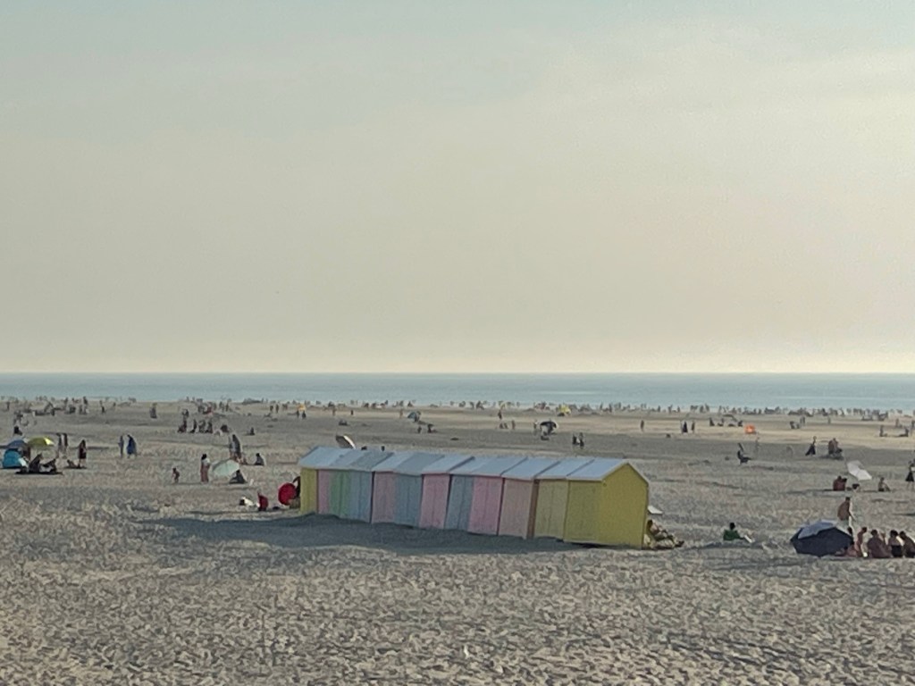 Et comme d’habitude des cabines sur la plage. Dans le fond les falaises du Tréport.